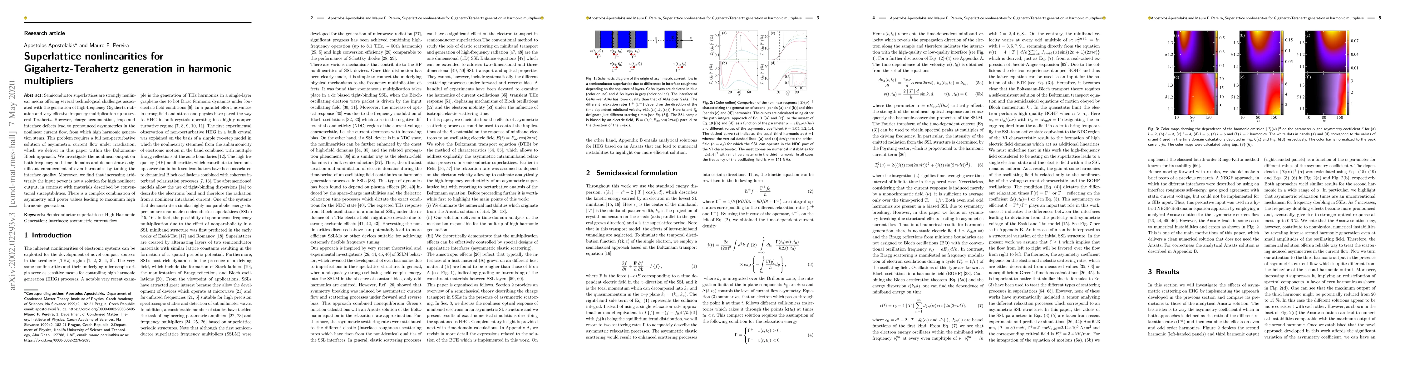 Semiconductor superlattices are strongly nonlinear media offering several technological challenges associated with the generation of high-frequency Gigahertz radiation and very effective frequency multiplication up to several Terahertz. However, charge accumulation, traps and interface defects lead to pronounced asymmetries in the nonlinear current flow, from which high harmonic generation stems. This problem requires a full non-perturbative solution of asymmetric current flow under irradiation, which we deliver in this paper within the Boltzmann-Bloch approach. We investigate the nonlinear output on both frequency and time domains and demonstrate a significant enhancement of even harmonics by tuning the interface quality. Moreover, we find that increasing arbitrarily the input power is not a solution for high nonlinear output, in contrast with materials described by conventional susceptibilities. There is a complex combination of asymmetry and power values leading to maximum high harmonic generation.