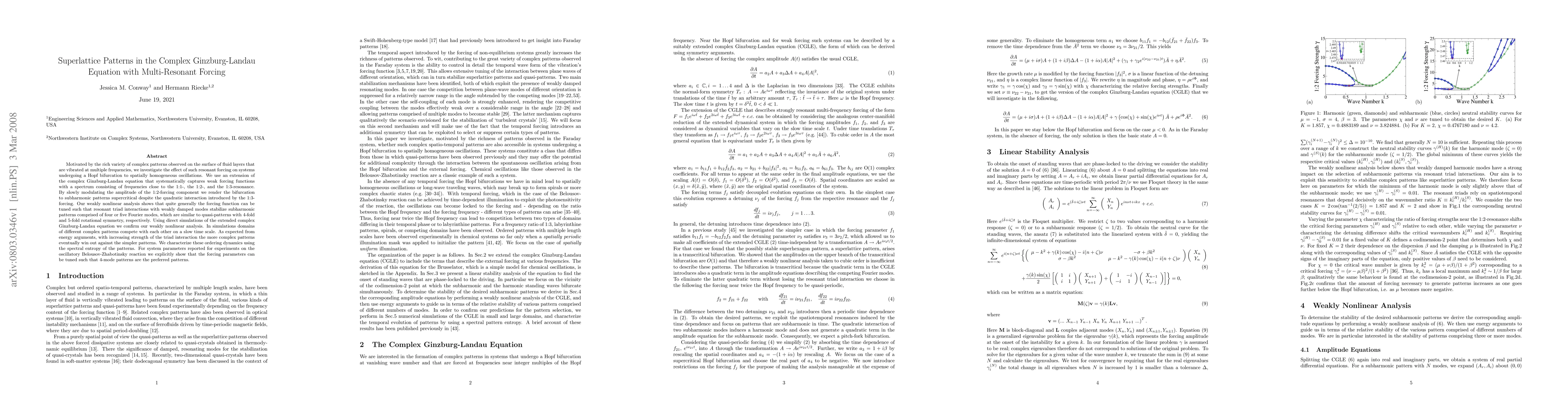 This paper explores how multi-resonant forcing affects systems undergoing Hopf bifurcation, using an extended complex Ginzburg-Landau equation. It demonstrates that resonant triad interactions can stabilize subharmonic patterns with 4-fold and 5-fold symmetries, confirmed through simulations and characterized by spectral entropy.
