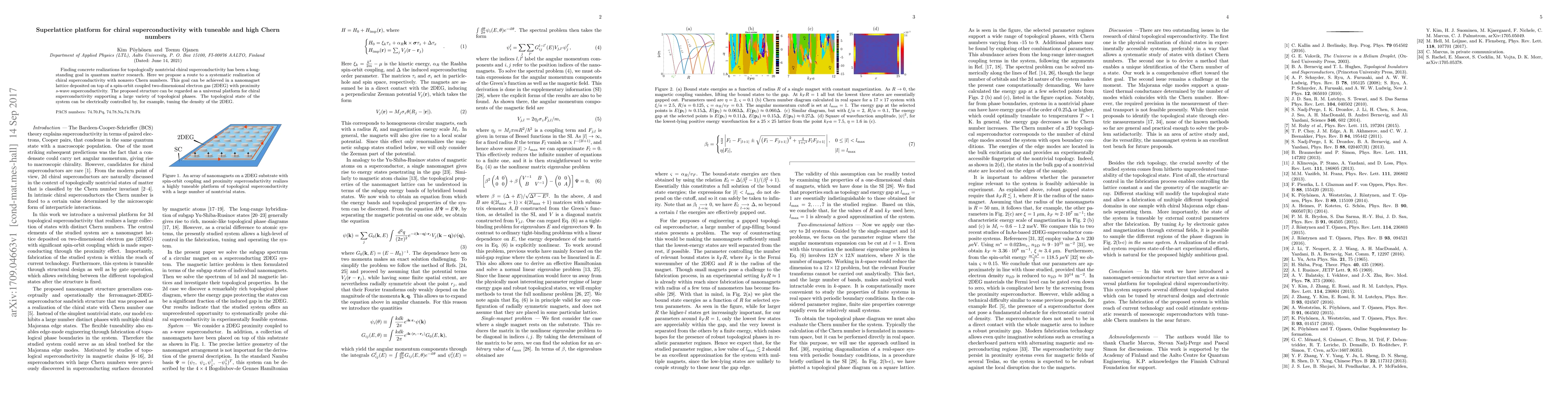 This research proposes a nanomagnet lattice on a 2DEG with proximity s-wave superconductivity as a platform for achieving chiral superconductivity with tunable, high Chern numbers, offering a systematic approach for realizing various topological phases electrically.