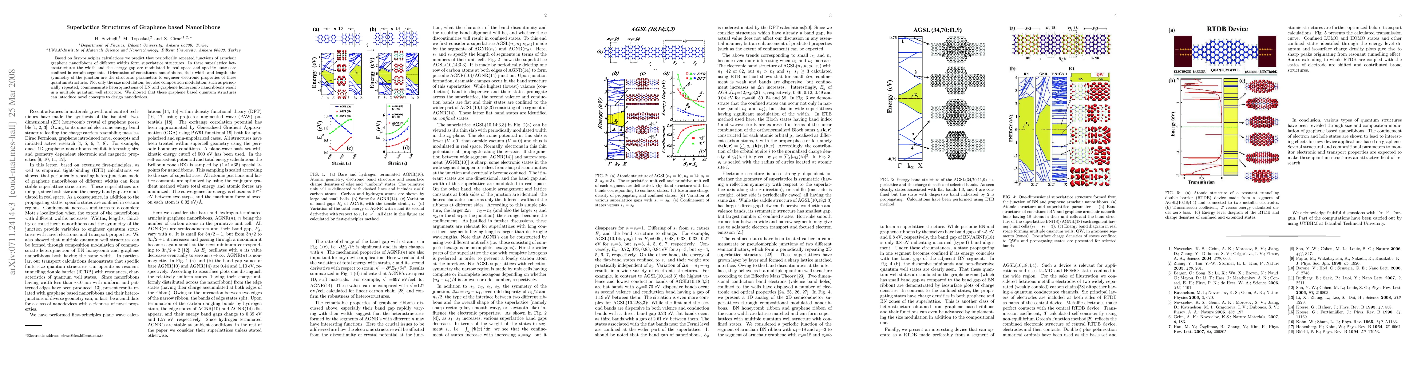 This research predicts that periodically repeated junctions of armchair graphene nanoribbons of varying widths form superlattice structures with modulated width and energy gap, enabling the engineering of electronic properties through structural parameters. These quantum structures, including heterojunctions of BN and graphene nanoribbons, offer novel concepts for designing advanced nanodevices.