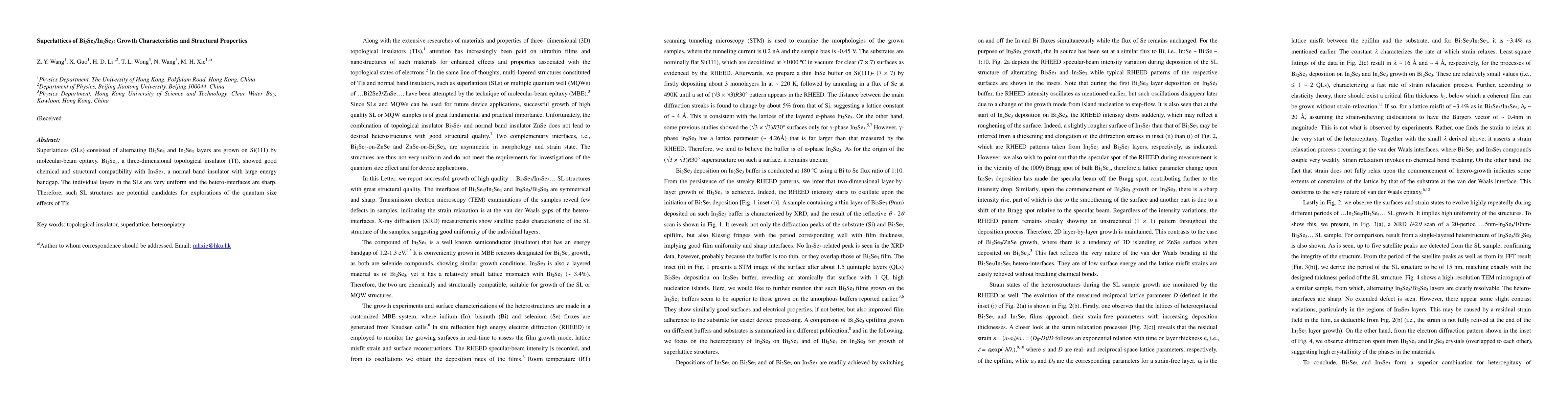 Summary: Superlattices of alternating Bi2Se3 and In2Se3 layers grown via molecular-beam epitaxy on Si(111) exhibit uniform individual layers and sharp hetero-interfaces, indicating potential for studying quantum size effects in topological insulators.