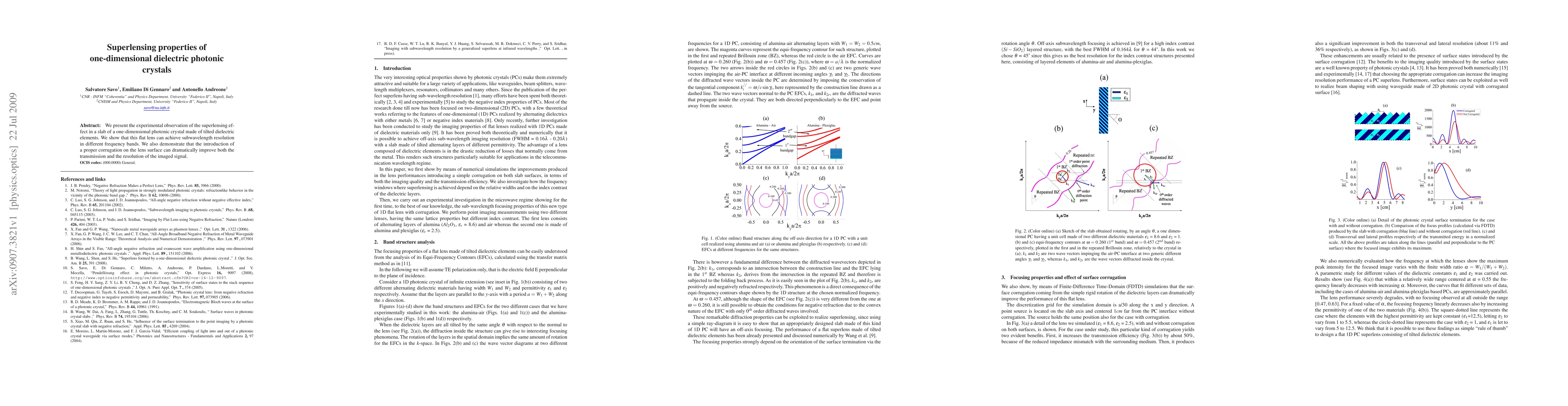 This paper reports the experimental observation of superlensing in a one-dimensional dielectric photonic crystal, achieving subwavelength resolution across various frequency bands. The study also highlights that surface corrugation significantly enhances both transmission and resolution of the lens.