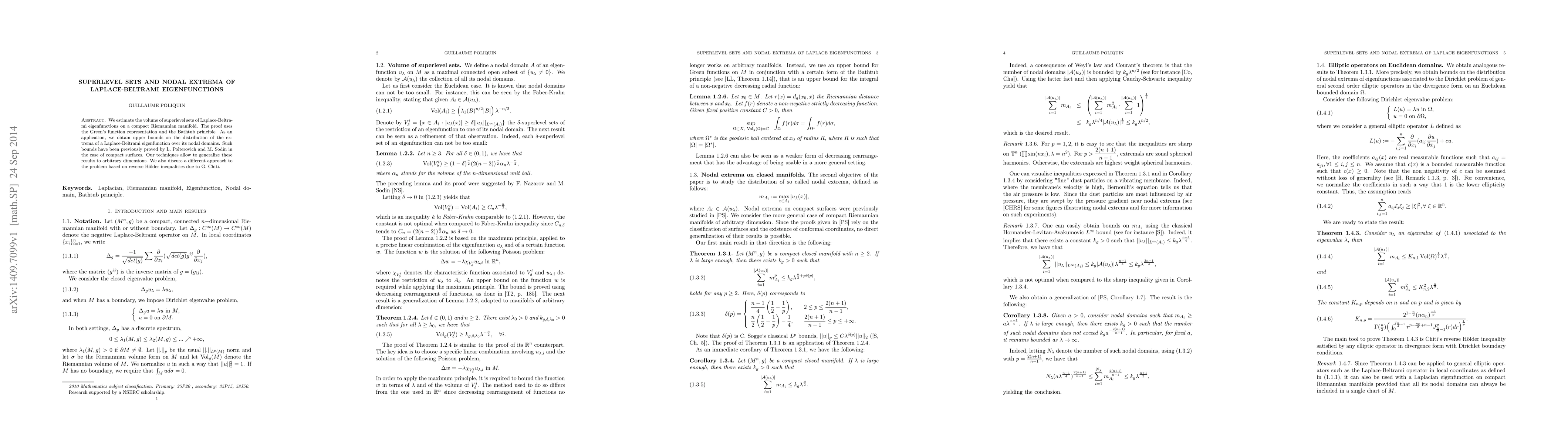 The paper introduces a novel approach using Green's functions and the Bathtub principle to estimate superlevel set volumes and bound nodal extrema in higher dimensions.