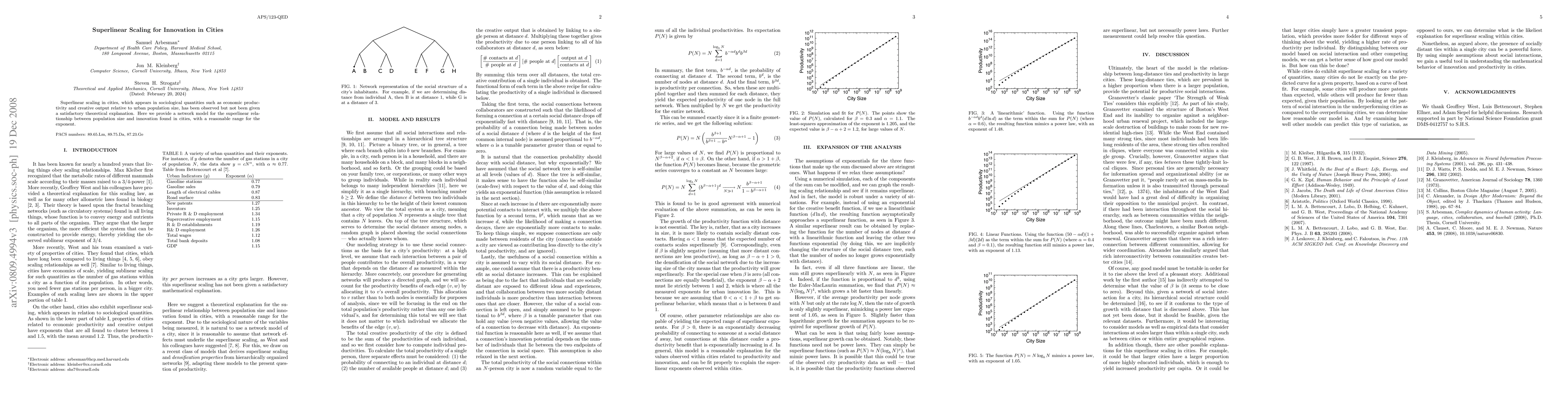 This paper proposes a network model to explain the superlinear scaling observed in cities' economic productivity and creative output relative to population size, offering a theoretical framework for the relationship between urban population and innovation. The model provides a plausible range for the scaling exponent.