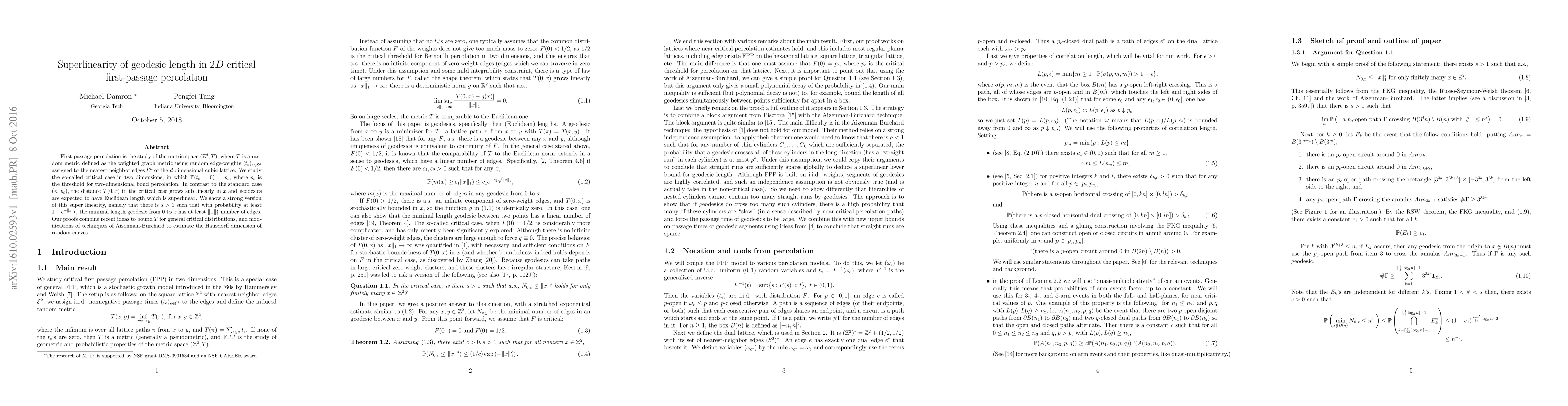 Researchers prove that in 2D critical first-passage percolation, the length of geodesic paths grows much faster than expected, with a minimum length of at least √x number of edges.
