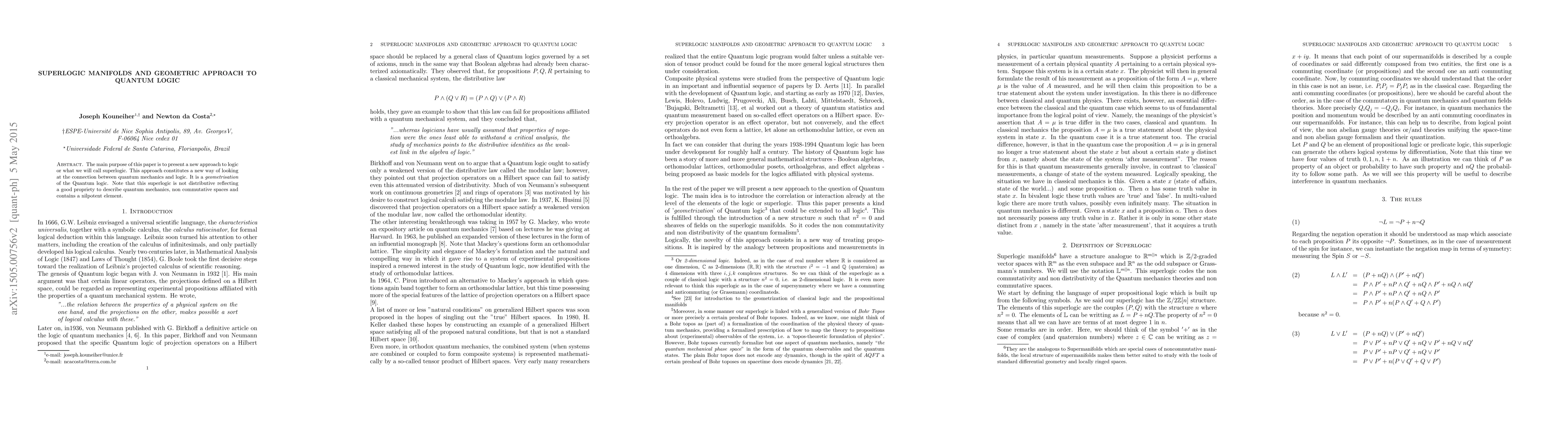 The main purpose of this paper is to present a new approach to logic or what we will call superlogic. This approach constitutes a new way of looking at the connection between quantum mechanics and logic. It is a {\it geometrisation} of the quantum logic. Note that this superlogic is not distributive reflecting a good propriety to describe quantum mechanics, non commutative spaces and contains a nilpotent element.