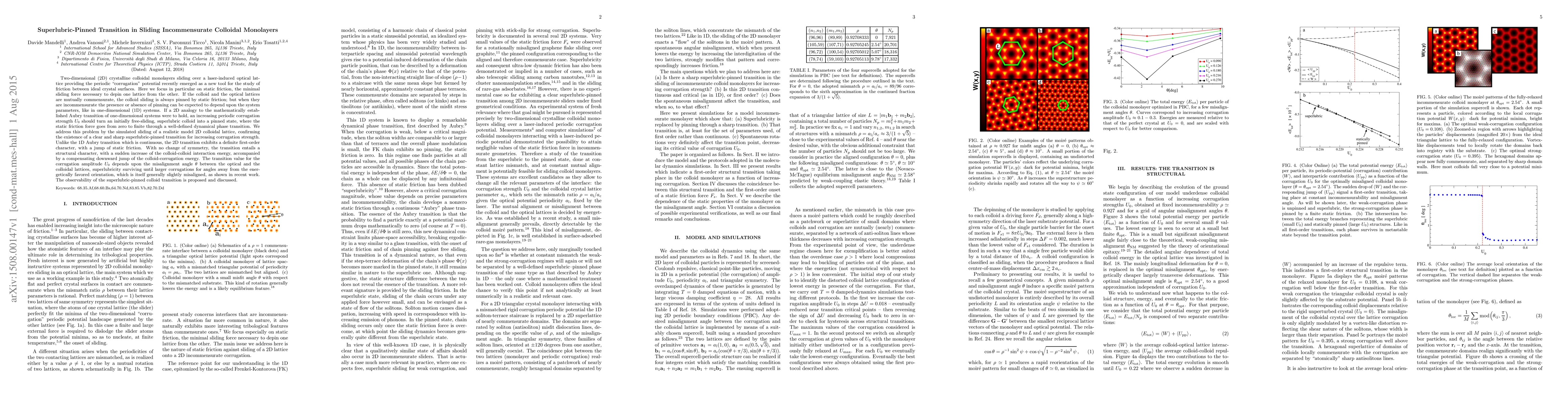 This paper investigates the superlubric-pinned transition in sliding incommensurate colloidal monolayers over optical lattices, confirming a sharp first-order transition in 2D analogous to the Aubry transition in 1D. The transition depends on corrugation strength and lattice misalignment, with superlubricity persisting longer for non-optimal alignment angles.