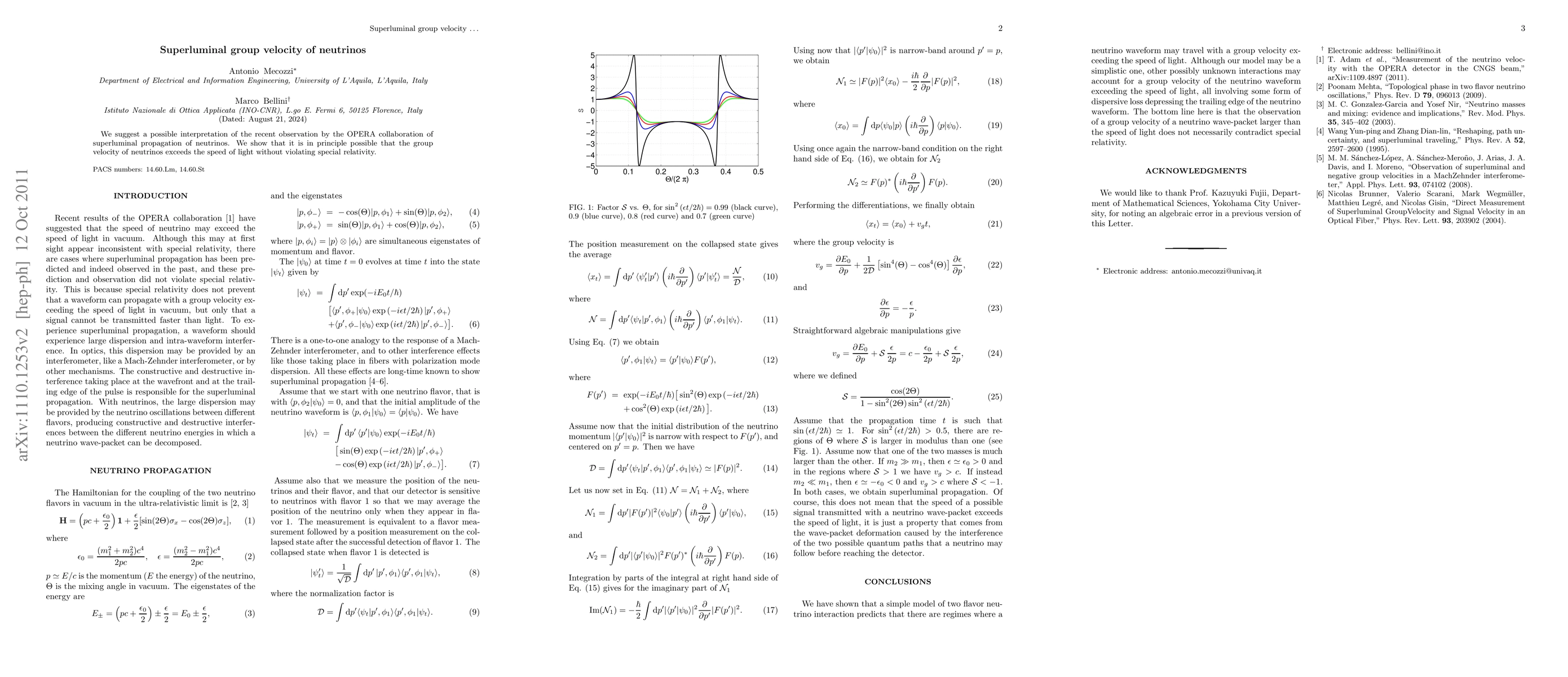 Summary: The paper proposes an interpretation of the OPERA collaboration's observation of neutrinos traveling faster than light, suggesting that the group velocity could exceed light speed without violating special relativity. This interpretation implies a potential new understanding of relativistic physics.