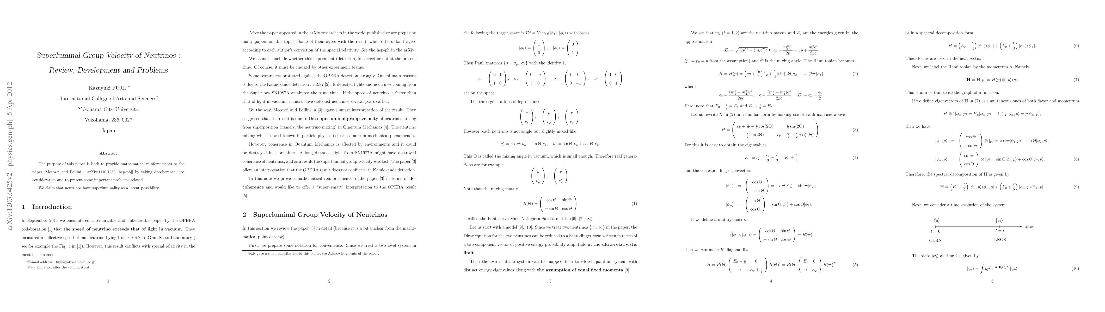 The purpose of this paper is both to provide mathematical reinforcements to the paper [Mecozzi and Bellini : arXiv:1110.1253 [hep-ph]] by taking decoherence into consideration and to present some important problems related. We claim that neutrinos have superluminality as a latent possibility.