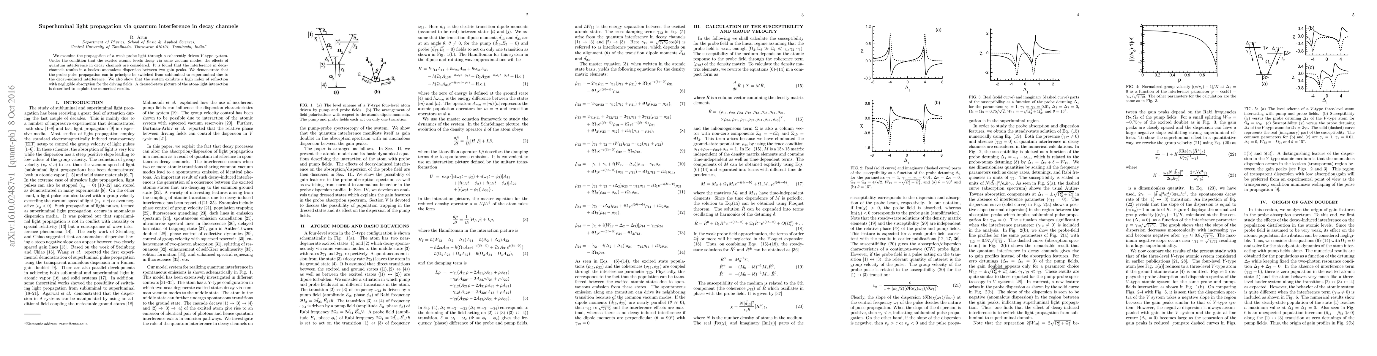 Researchers found that a weak probe light can propagate through a quantum system faster than the speed of light due to decay-induced interference, enabling superluminal light propagation.