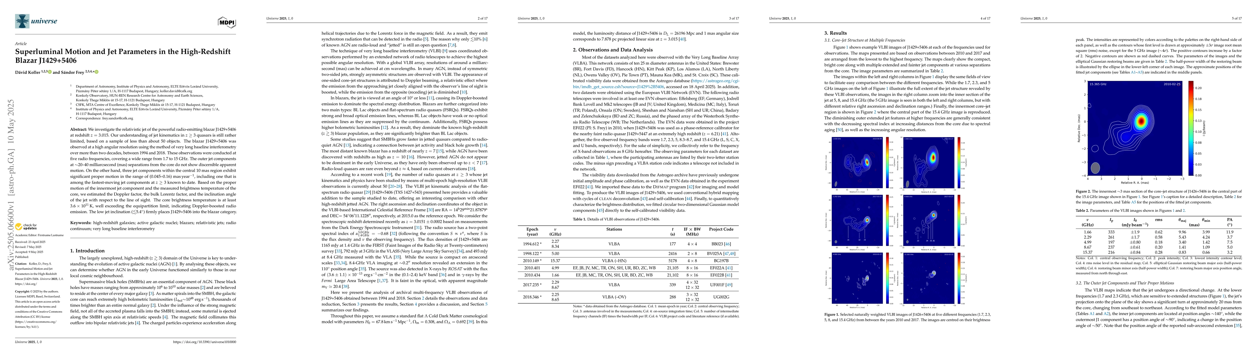 This study investigates the high-redshift blazar J1429+5406, revealing a jet with significant proper motion and estimating its bulk Lorentz factor, Doppler factor, and inclination angle through radio observations over two decades.