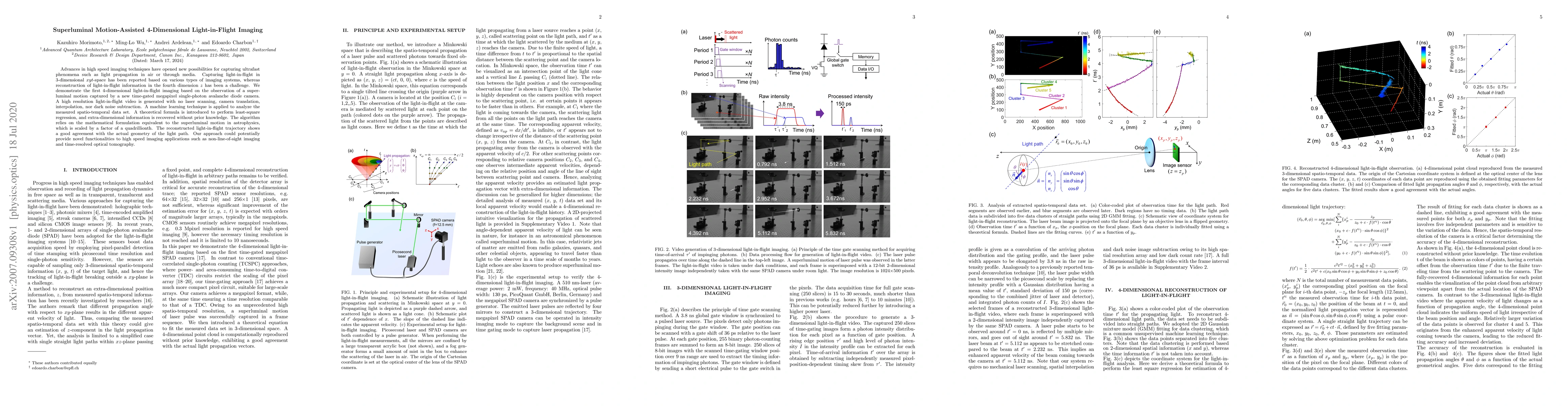This paper presents a novel 4-dimensional light-in-flight imaging technique using a time-gated megapixel single-photon camera to capture superluminal motion, enabling reconstruction of light paths in the fourth dimension without traditional scanning or noise subtraction. The method employs machine learning and a theoretical formula based on superluminal motion to recover extra-dimensional information.