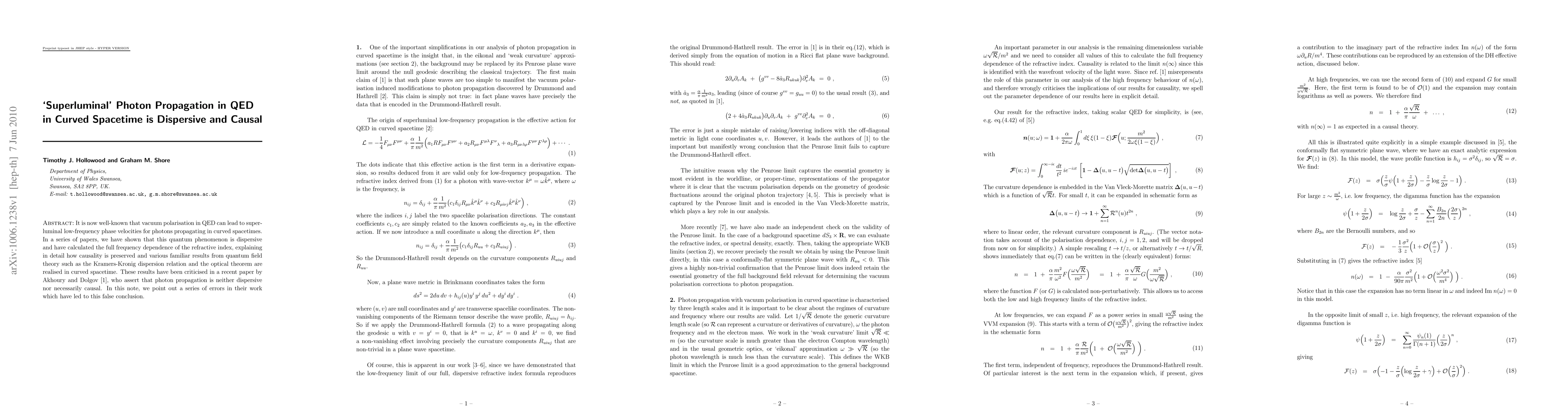 It is now well-known that vacuum polarisation in QED can lead to superluminal low-frequency phase velocities for photons propagating in curved spacetimes. In a series of papers, we have shown that this quantum phenomenon is dispersive and have calculated the full frequency dependence of the refractive index, explaining in detail how causality is preserved and various familiar results from quantum field theory such as the Kramers-Kronig dispersion relation and the optical theorem are realised in curved spacetime. These results have been criticised in a recent paper by Akhoury and Dolgov arXiv:1003.6110 [hep-th], who assert that photon propagation is neither dispersive nor necessarily causal. In this note, we point out a series of errors in their work which have led to this false conclusion.