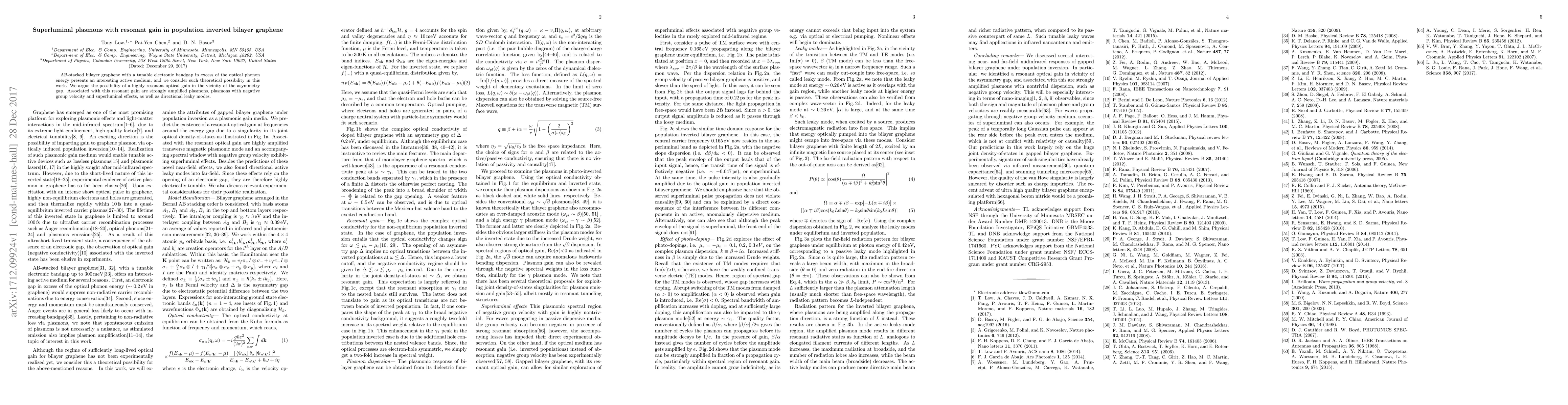 This research explores the potential for superluminal plasmons and resonant optical gain in AB-stacked bilayer graphene with a tunable electronic bandgap. The study suggests that these materials can exhibit amplified plasmons with negative group velocity and superluminal effects near the asymmetry gap.