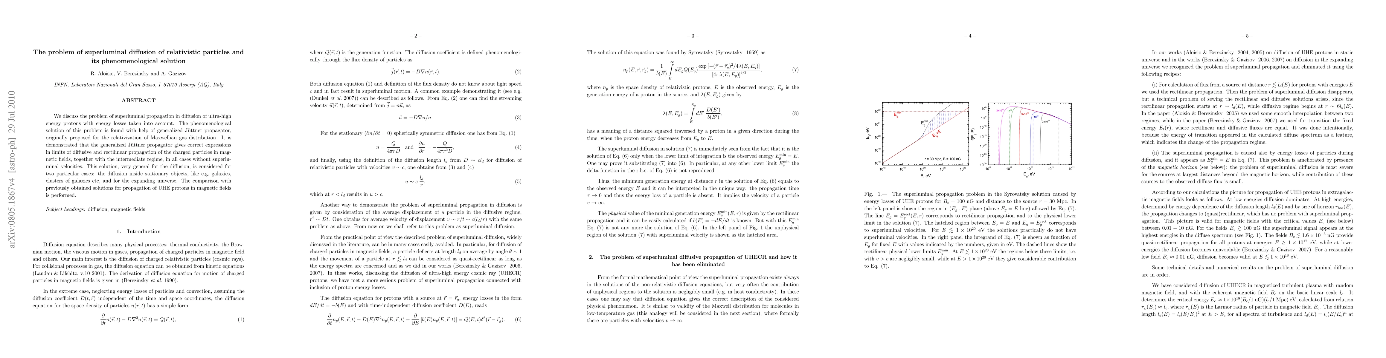 Researchers develop a solution to the superluminal problem in diffusion of ultra high energy protons, using the generalized J"uttner propagator to describe propagation in magnetic fields without superluminal velocities.