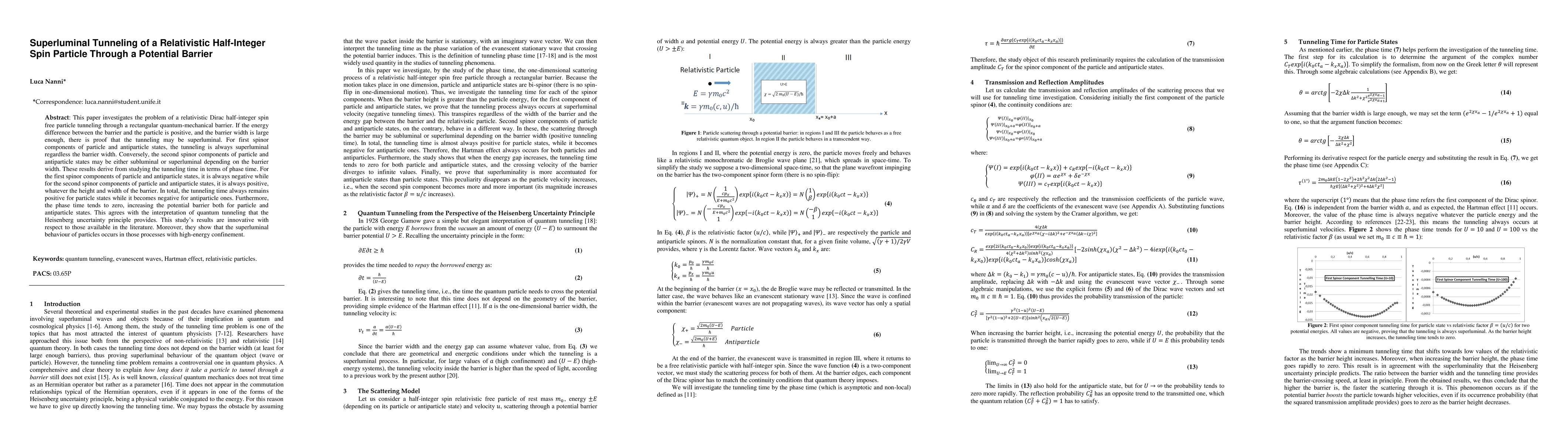 This paper explores relativistic Dirac particles tunneling through quantum barriers, demonstrating superluminal tunneling for certain spinor components, especially for first components regardless of barrier width. The study reveals that while particle tunneling times remain positive, antiparticle tunneling times can become negative, aligning with quantum mechanics principles.