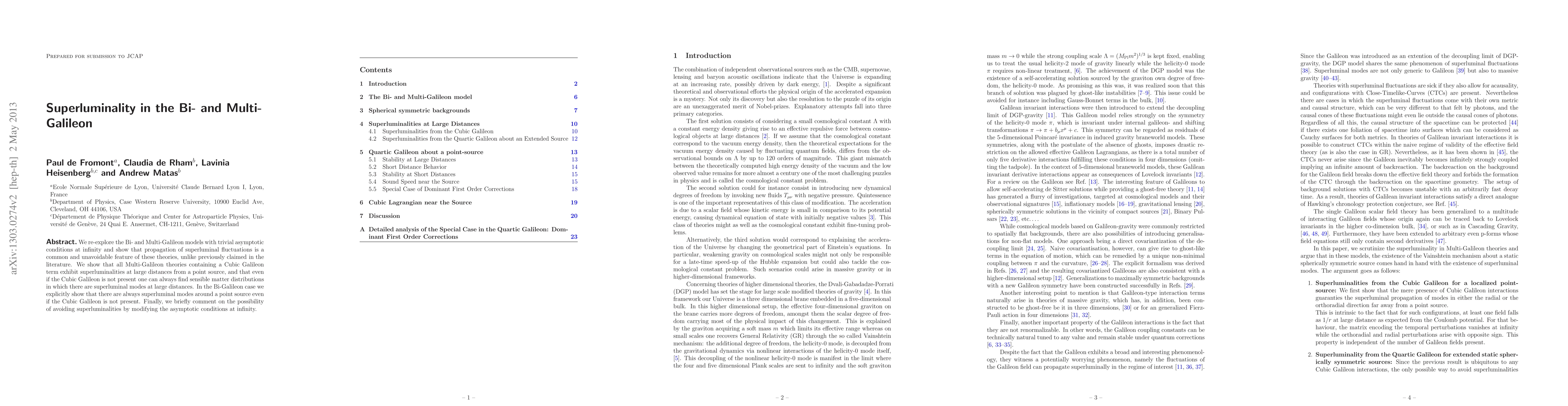 This paper demonstrates that superluminal fluctuations are inherent in Bi- and Multi-Galileon models, contrary to earlier claims. It reveals that even without a Cubic Galileon term, superluminal modes can emerge in sensible matter distributions at large distances from a point source.