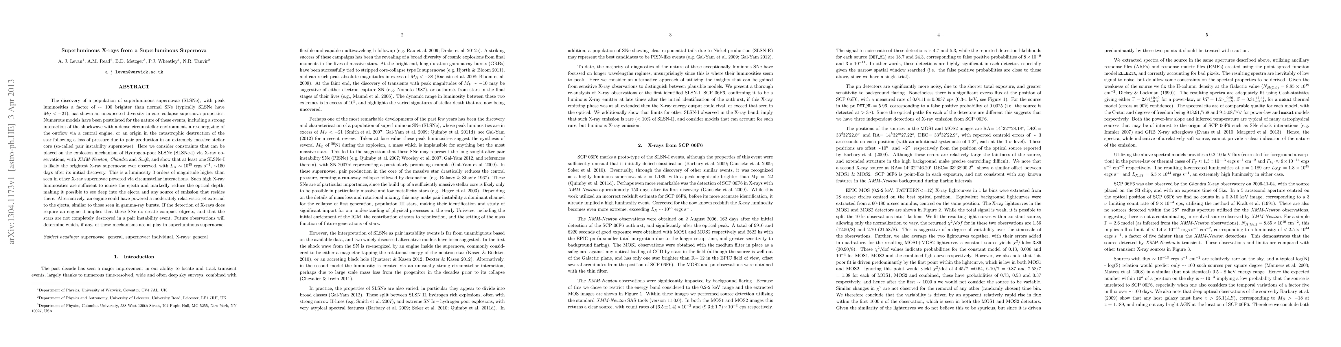 This paper investigates the X-ray emissions from a superluminous supernova (SLSNe-I), revealing it as the brightest X-ray supernova ever observed, with a luminosity of ~10^45 ergs/s. This suggests either a central engine powering a relativistic jet or a strong interaction with a dense environment, challenging the notion of complete stellar destruction via pair instability.