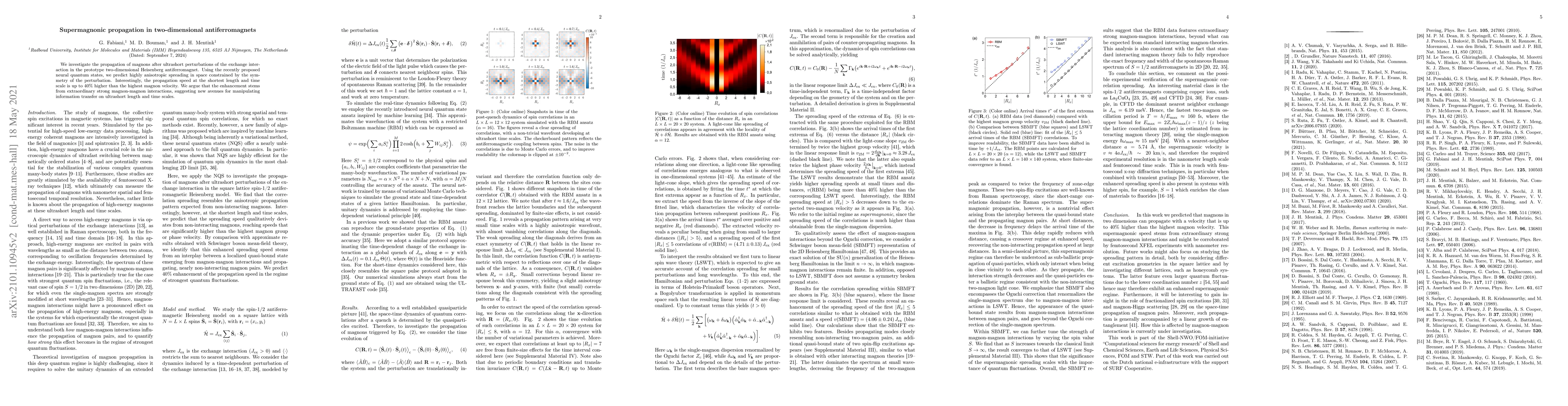 Researchers studied how magnons propagate in 2D antiferromagnets after a brief disturbance, finding that the speed of propagation can be up to 40% faster than expected, possibly due to strong interactions between magnons.