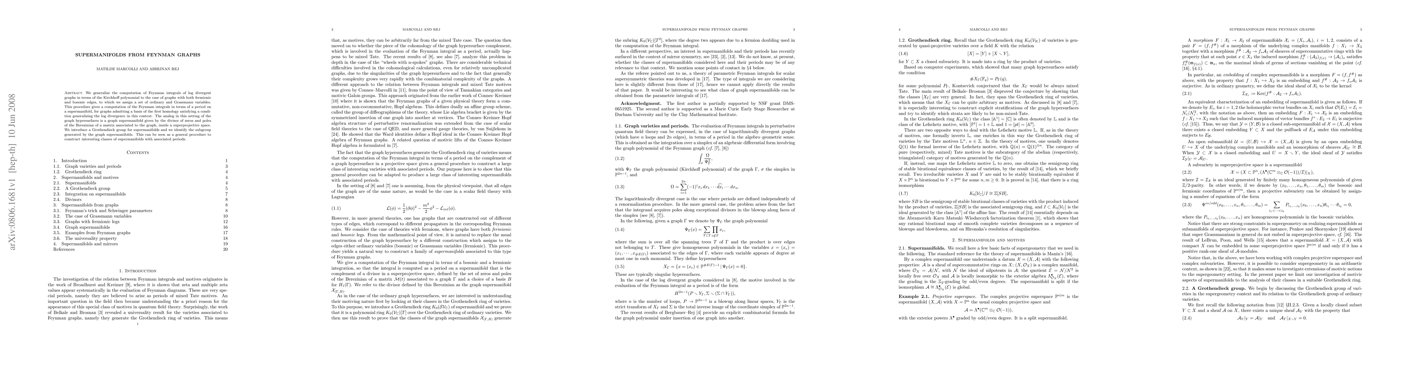 This paper generalizes the computation of Feynman integrals for log divergent graphs to include both fermionic and bosonic edges, assigning them ordinary and Grassmann variables. It introduces a Grothendieck group for supermanifolds and identifies a subgroup generated by graph supermanifolds, providing a method to construct classes of supermanifolds with associated periods.