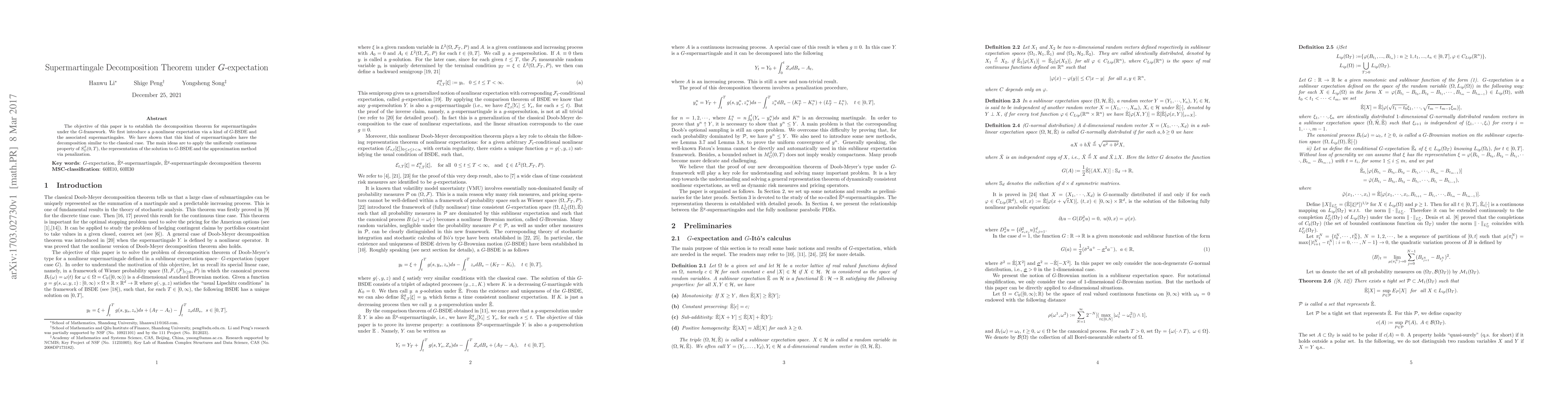 This paper establishes a decomposition theorem for supermartingales under the $G$-expectation framework, introducing a $g$-nonlinear expectation through a $G$-BSDE and demonstrating a decomposition similar to the classical case using uniform continuity properties, $G$-BSDE solutions, and penalization approximation methods.