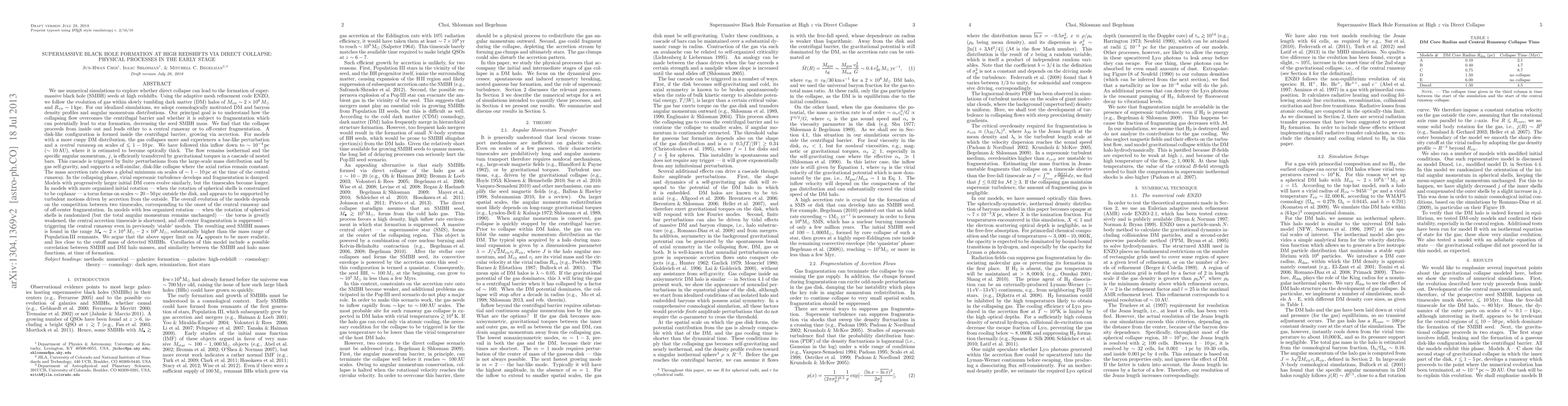 We use numerical simulations to explore whether direct collapse can lead to the formation of SMBH seeds at high-z. We follow the evolution of gas within DM halos of 2 x 10^8 Mo and 1 kpc. We adopt cosmological density profiles and j-distributions. Our goal is to understand how the collapsing flow overcomes the centrifugal barrier and whether it is subject to fragmentation. We find that the collapse leads either to a central runaway or to off-center fragmentation. A disk-like configuration is formed inside the centrifugal barrier. For more cuspy DM distribution, the gas collapses more and experiences a bar-like perturbation and a central runaway. We have followed this inflow down to ~10^{-4} pc. The flow remains isothermal and the specific angular momentum is efficiently transferred by gravitational torques in a cascade of nested bars. This cascade supports a self-similar, disk-like collapse. In the collapsing phase, virial supersonic turbulence develops and fragmentation is damped. For larger initial DM cores the timescales become longer. In models with more organized initial rotation, a torus forms and appears to be supported by turbulent motions. The evolution depends on the competition between two timescales, corresponding to the onset of the central runaway and off-center fragmentation. For less organized rotation, the torus is greatly weakened, the central accretion timescale is shortened, and off-center fragmentation is suppressed --- triggering the central runaway even in previously `stable' models. The resulting SMBH masses lie in the range 2 x 10^4 Mo - 2 x 10^6 Mo, much higher than for Population III remnants. We argue that the above upper limit appears to be more realistic mass. Corollaries of this model include a possible correlation between SMBH and DM halo masses, and similarity between the SMBH and halo mass functions, at time of formation.