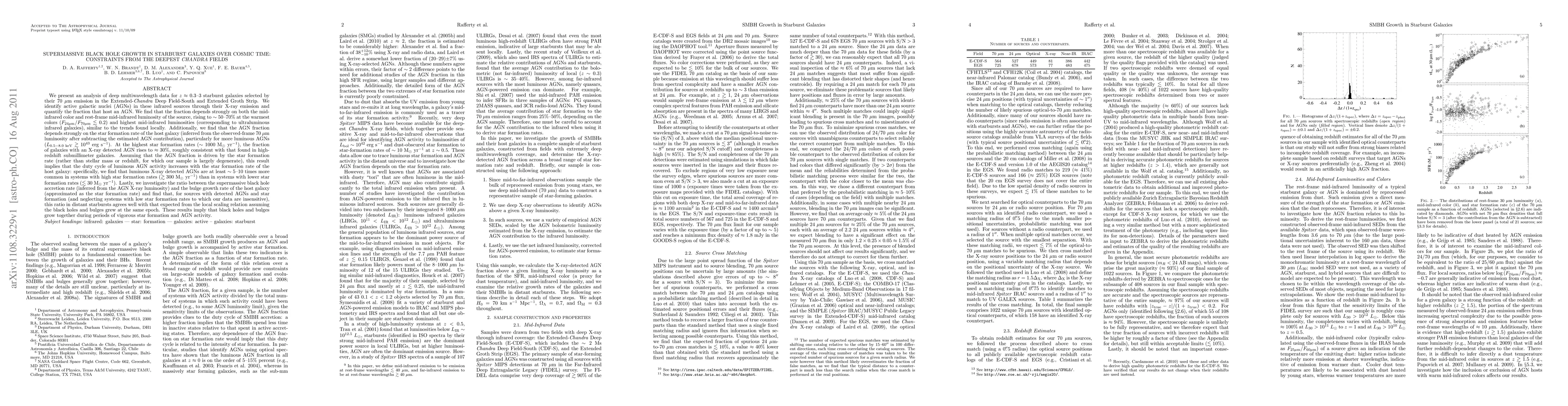 Researchers analyzed deep Chandra data to find that starburst galaxies with high star formation rates have a higher rate of luminous supermassive black hole activity, suggesting a link between galaxy growth and black hole accretion.