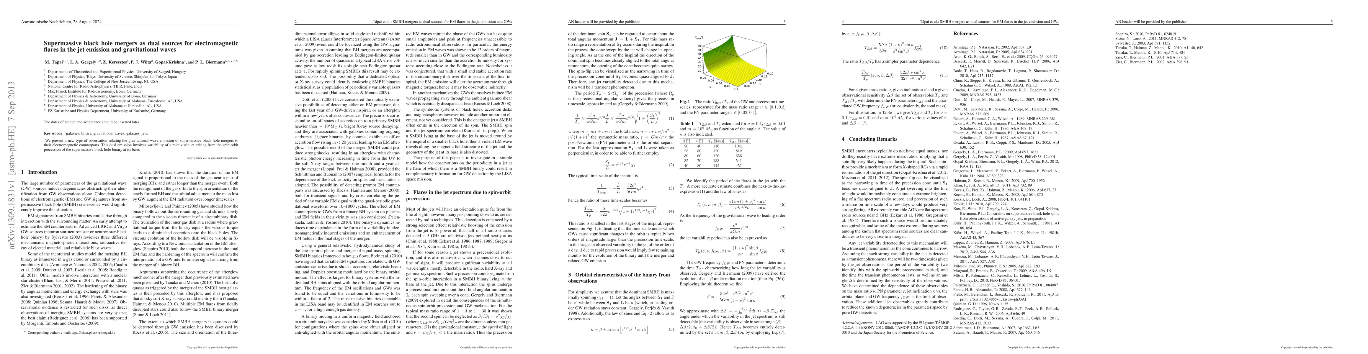Summary: This research reveals a new observation linking gravitational waves from supermassive black hole mergers to electromagnetic flares, attributing the dual emission to variability in a relativistic jet caused by spin-orbit precession at the binary's base.