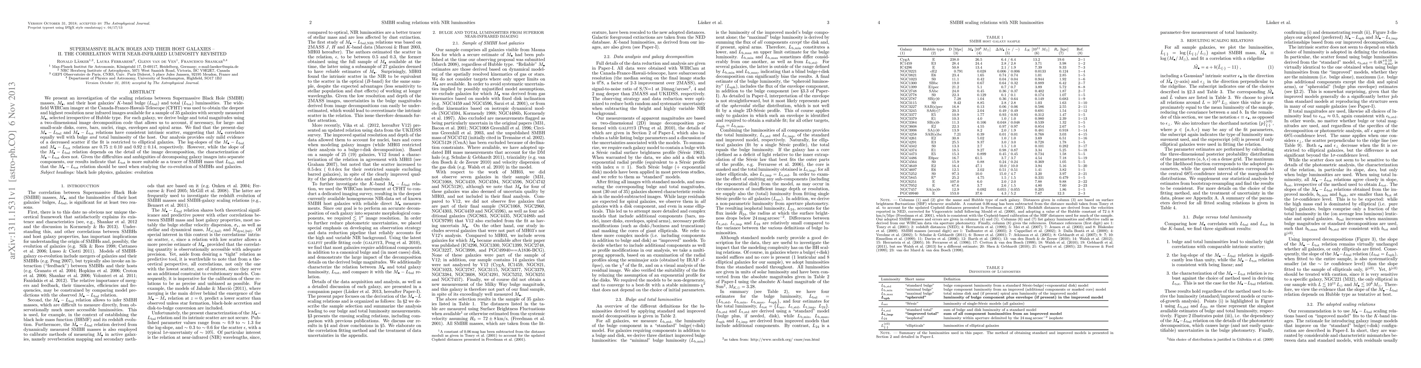 We present an investigation of the scaling relations between Supermassive Black Hole (SMBH) masses (Mbh), and their host galaxies' K-band bulge (Lbul) and total (Ltot) luminosities. The wide-field WIRCam imager at the Canada-France-Hawaii-Telescope (CFHT) was used to obtain the deepest and highest resolution near infrared images available for a sample of 35 galaxies with securely measured Mbh, selected irrespective of Hubble type. For each galaxy, we derive bulge and total magnitudes using a two-dimensional image decomposition code that allows us to account, if necessary, for large- and small-scale disks, cores, bars, nuclei, rings, envelopes and spiral arms. We find that the present-day Mbh-Lbul and Mbh-Ltot relations have consistent intrinsic scatter, suggesting that Mbh correlates equally well with bulge and total luminosity of the host. Our analysis provides only mild evidence of a decreased scatter if the fit is restricted to elliptical galaxies. The log-slopes of the Mbh-Lbul and Mbh-Ltot relations are 0.75+/-0.10 and 0.92+/-0.14, respectively. However, while the slope of the Mbh-Lbul relation depends on the detail of the image decomposition, the characterization of Mbh-Ltot does not. Given the difficulties and ambiguities of decomposing galaxy images into separate components, our results indicate that Ltot is more suitable as a tracer of SMBH mass than Lbul, and that the Mbh-Ltot relation should be used when studying the co-evolution of SMBHs and galaxies.