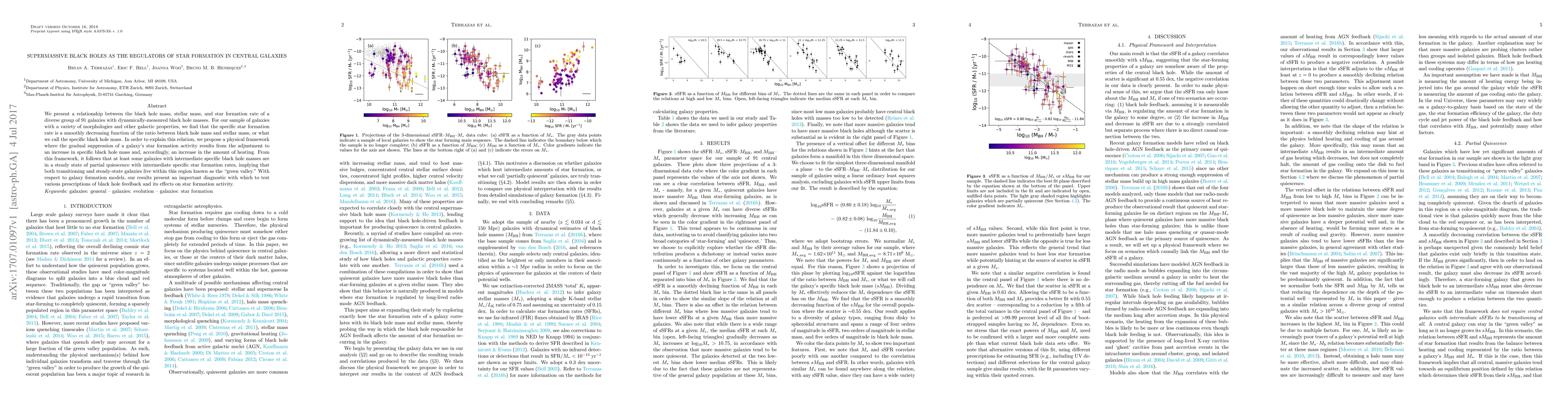 This study reveals a relationship linking black hole mass, stellar mass, and star formation rate across 91 galaxies. The findings suggest that specific star formation rate decreases with increasing specific black hole mass, indicating black hole growth suppresses star formation, and some galaxies exist in a steady state of partial quiescence, aiding in understanding galaxy formation models and black hole feedback effects.