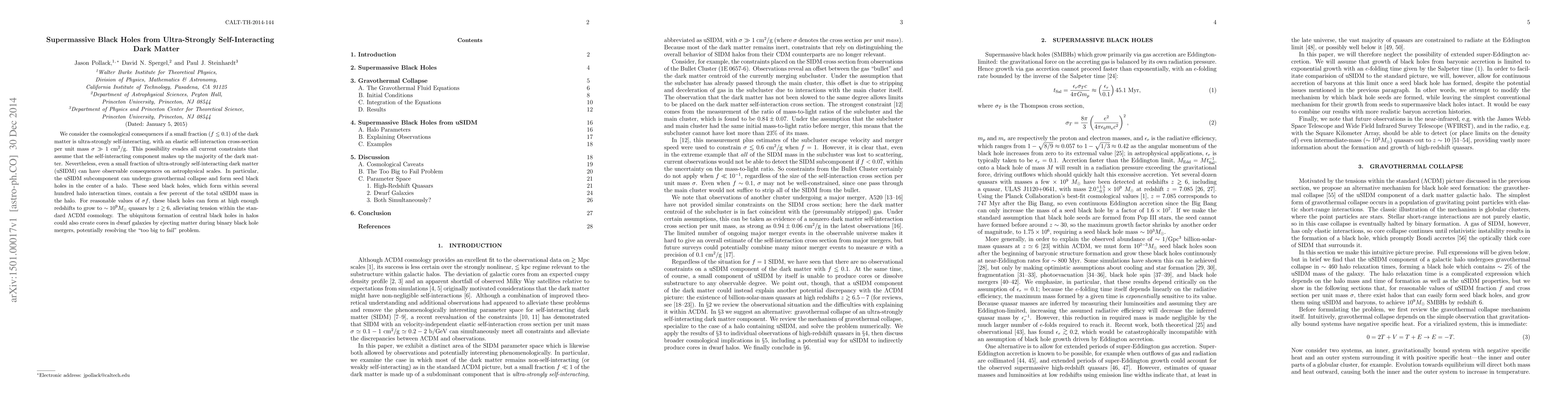 This paper explores the formation of supermassive black holes from a small fraction of ultra-strongly self-interacting dark matter, which can evade current constraints. These black holes may grow into quasars and resolve tensions in standard cosmological models, while also potentially creating cores in dwarf galaxies.