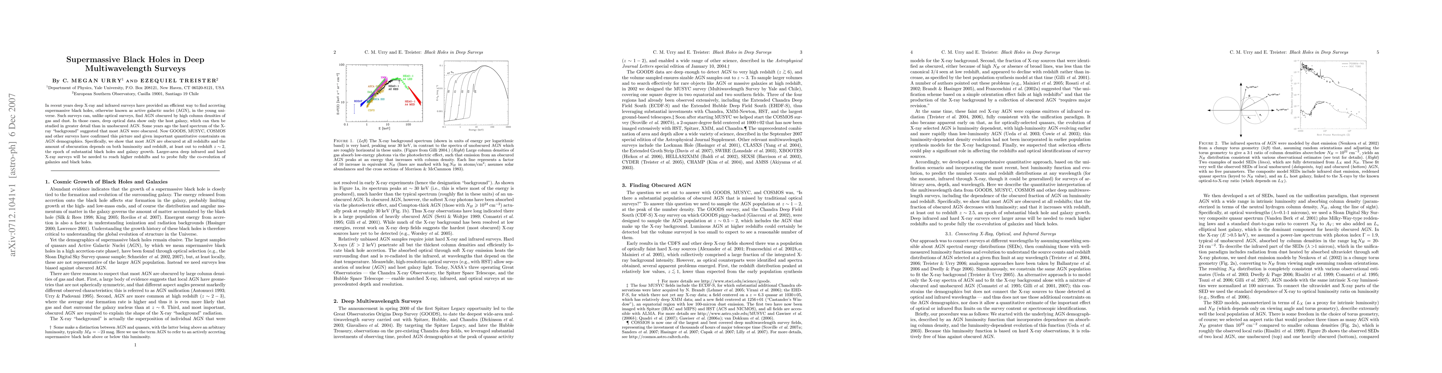 In recent years deep X-ray and infrared surveys have provided an efficient way to find accreting supermassive black holes, otherwise known as active galactic nuclei (AGN), in the young universe. Such surveys can, unlike optical surveys, find AGN obscured by high column densities of gas and dust. In those cases, deep optical data show only the host galaxy, which can then be studied in greater detail than in unobscured AGN. Some years ago the hard spectrum of the X-ray "background" suggested that most AGN were obscured. Now GOODS, MUSYC, COSMOS and other surveys have confirmed this picture and given important quantitative constraints on AGN demographics. Specifically, we show that most AGN are obscured at all redshifts and the amount of obscuration depends on both luminosity and redshift, at least out to redshift z~2, the epoch of substantial black holes and galaxy growth. Larger-area deep infrared and hard X-ray surveys will be needed to reach higher redshifts and to probe fully the co-evolution of galaxies and black holes.