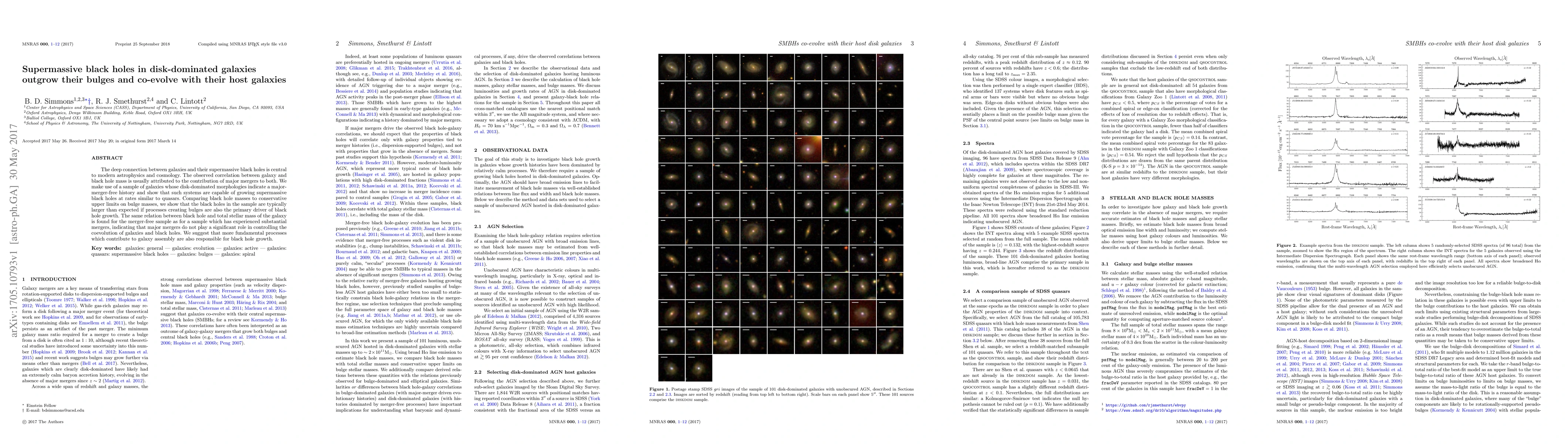This study reveals that supermassive black holes in disk-dominated galaxies can grow at rates comparable to quasars, often outpacing the growth of their bulges, suggesting a co-evolution independent of major mergers. The findings imply that galaxy assembly processes, rather than mergers, primarily drive the growth of both galaxies and their central black holes.