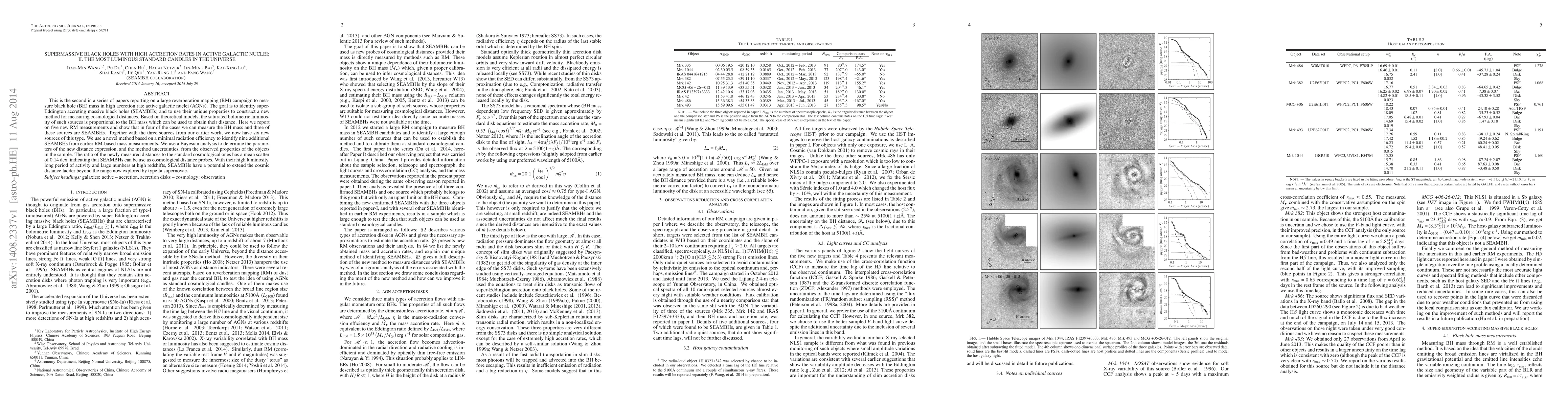 This is the second in a series of papers reporting on a large reverberation mapping (RM) campaign to measure black hole (BH) mass in high accretion rate active galactic nuclei (AGNs). The goal is to identify super-Eddington accreting massive black holes (SEAMBHs) and to use their unique properties to construct a new method for measuring cosmological distances. Based on theoretical models, the saturated bolometric luminosity of such sources is proportional to the BH mass which can be used to obtain their distance. Here we report on five new RM measurements and show that in four of the cases we can measure the BH mass and three of these sources are SEAMBHs. Together with the three sources from our earlier work, we now have six new sources of this type. We use a novel method based on a minimal radiation efficiency to identify nine additional SEAMBHs from earlier RM-based mass measurements. We use a Bayesian analysis to determine the parameters of the new distance expression, and the method uncertainties, from the observed properties of the objects in the sample. The ratio of the newly measured distances to the standard cosmological ones has a mean scatter of 0.14 dex, indicating that SEAMBHs can be use as cosmological distance probes. With their high luminosity, long period of activity and large numbers at high redshifts, SEAMBHs have a potential to extend the cosmic distance ladder beyond the range now explored by type Ia supernovae.
