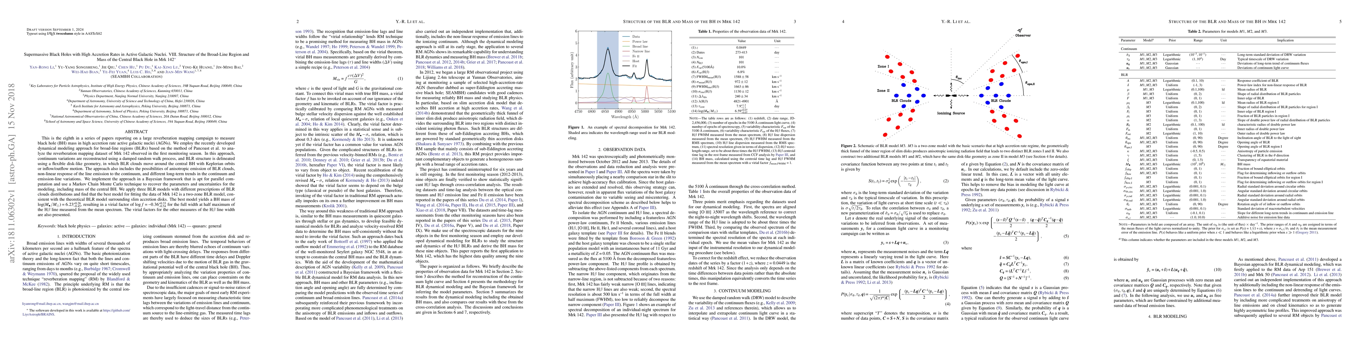 The study introduces a Bayesian framework for dynamical modeling of BLRs, enabling the recovery of parameters and uncertainties using Markov Chain Monte Carlo techniques, and applies it to measure the BH mass in Mrk 142.