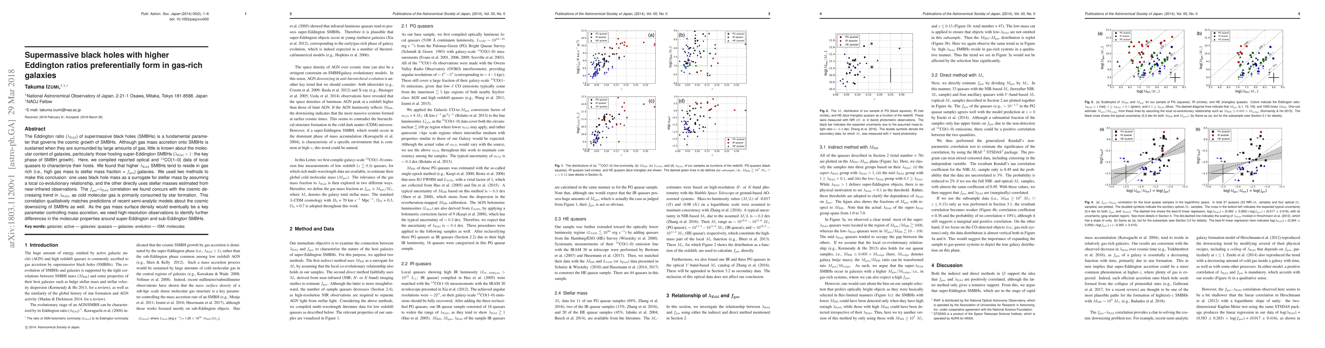 The Eddington ratio ($\lambda_{\rm Edd}$) of supermassive black holes (SMBHs) is a fundamental parameter that governs the cosmic growth of SMBHs. Although gas mass accretion onto SMBHs is sustained when they are surrounded by large amounts of gas, little is known about the molecular content of galaxies, particularly those hosting super-Eddington SMBHs ($\lambda_{\rm Edd} > 1$: the key phase of SMBH growth). Here, we compiled reported optical and $^{12}$CO(1--0) data of local quasars to characterize their hosts. We found that higher $\lambda_{\rm Edd}$ SMBHs tend to reside in gas rich (i.e., high gas mass to stellar mass fraction = $f_{\rm gas}$) galaxies. We used two methods to make this conclusion: one uses black hole mass as a surrogate for stellar mass by assuming a local co-evolutionary relationship, and the other directly uses stellar masses estimated from near-infrared observations. The $f_{\rm gas}$--$\lambda_{\rm Edd}$ correlation we found concurs with the cosmic decreasing trend in $\lambda_{\rm Edd}$, as cold molecular gas is primarily consumed by star formation. This correlation qualitatively matches predictions of recent semi-analytic models about the cosmic downsizing of SMBHs as well. As the gas mass surface density would eventually be a key parameter controlling mass accretion, we need high-resolution observations to identify further differences in the molecular properties around super-Eddington and sub-Eddington SMBHs.