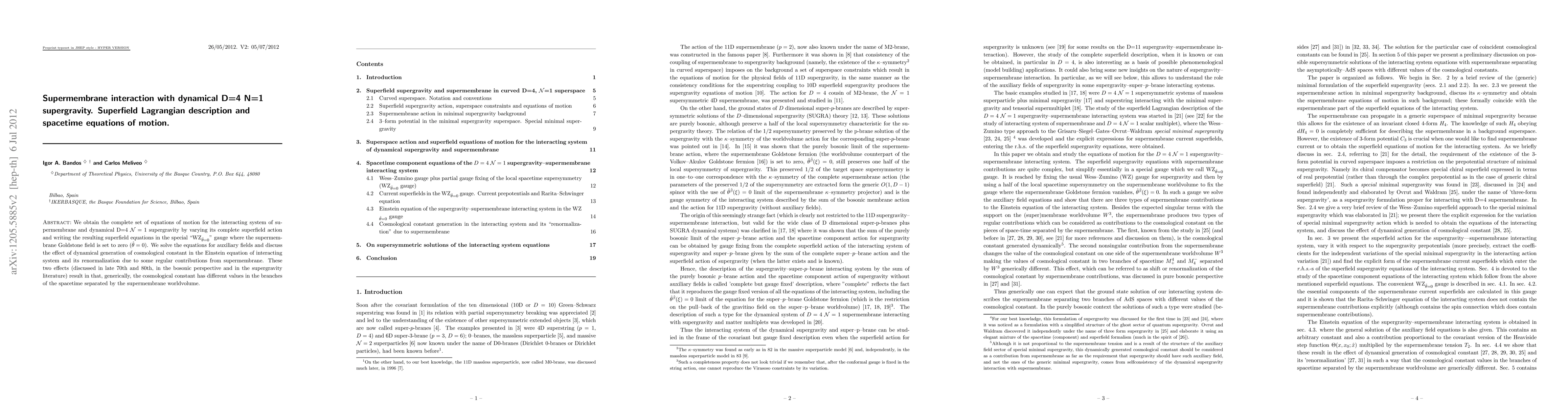 We obtain the complete set of equations of motion for the interacting system of supermembrane and dynamical D=4 N = 1 supergravity by varying its complete superfield action and writing the resulting superfield equations in the special gauge where the supermembrane Goldstone field is set to zero. We solve the equations for auxiliary fields and discuss the effect of dynamical generation of cosmological constant in the Einstein equation of interacting system and its renormalization due to some regular contributions from supermembrane. These two effects (discussed in late 70th and 80th, in the bosonic perspective and in the supergravity literature) result in that, generically, the cosmological constant has different values in the branches of the spacetime separated by the supermembrane worldvolume.