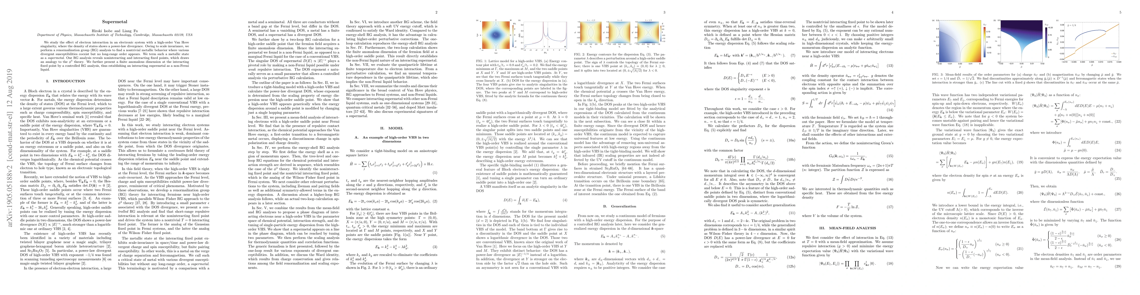 We study the effect of electron interaction in an electronic system with a high-order Van Hove singularity, where the density of states shows a power-law divergence. Owing to scale invariance, we perform a renormalization group (RG) analysis to find a nontrivial metallic behavior where various divergent susceptibilities coexist but no long-range order appears. We term such a metallic state as a supermetal. Our RG analysis reveals noninteracting and interacting fixed points, which draws an analogy to the $\phi^4$ theory. We further present a finite anomalous dimension at the interacting fixed point by a controlled RG analysis, thus establishing an interacting supermetal as a non-Fermi liquid.