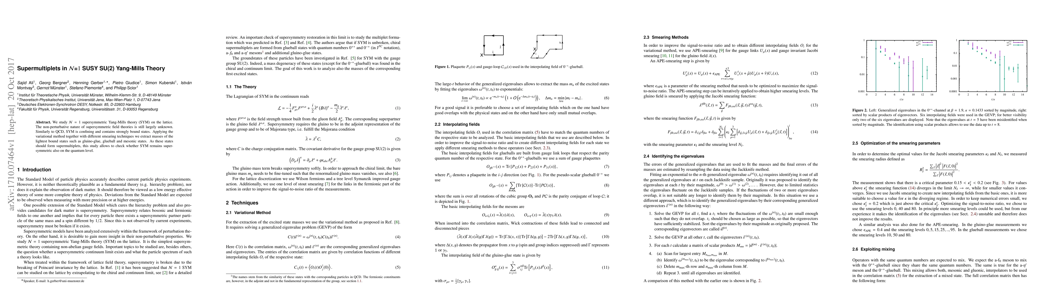 Summary: This research investigates $\mathcal{N}=1$ supersymmetric Yang-Mills theory on a lattice, employing variational methods to determine masses of bound states, aiming to verify the preservation of supersymmetry in these states despite strong interactions.