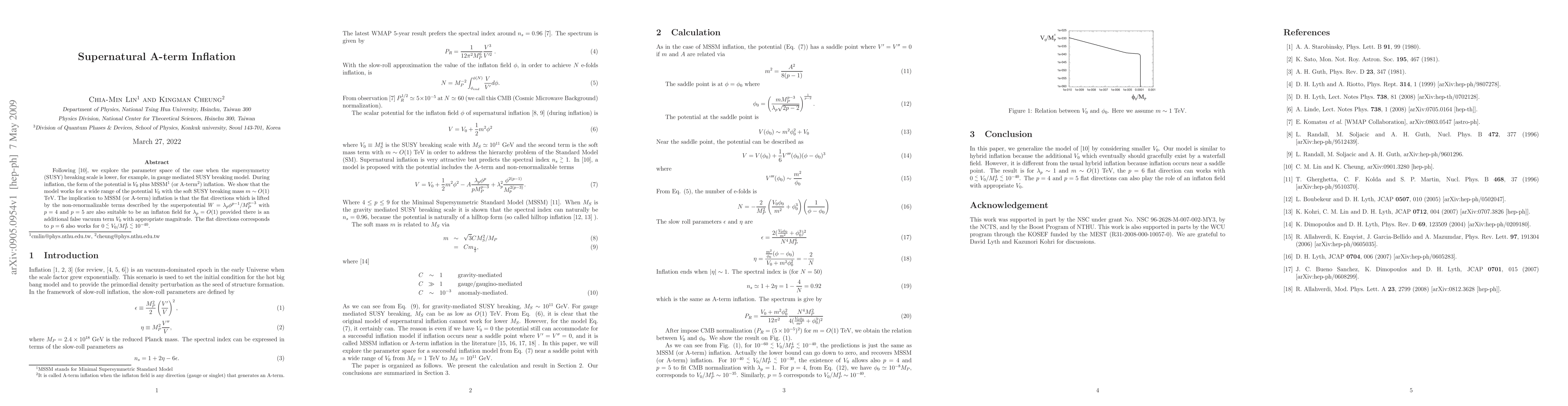 Following \cite{Lin:2009yt}, we explore the parameter space of the case when the supersymmetry (SUSY) breaking scale is lower, for example, in gauge mediated SUSY breaking model. During inflation, the form of the potential is $V_0$ plus MSSM (MSSM stands for Minimal Supersymmetric Standard Model) (or A term (It is called A-term inflation when the inflaton field is any direction (gauge or singlet) that generates an A-term.)) inflation. We show that the model works for a wide range of the potential $V_0$ with the soft SUSY breaking mass $m\sim O(1)$ TeV. The implication to MSSM (or A-term) inflation is that the flat directions which is lifted by the non-renormalizable terms described by the superpotential $W=\lambda_p \phi^{p-1}/M^{p-3}_P$ with $p=4$ and $p=5$ are also suitable to be an inflaton field for $\lambda_p=O(1)$ provided there is an additional false vacuum term $V_0$ with appropriate magnitude. The flat directions corresponds to $p=6$ also works for $0 \lae V_0/M_P^4 \lae 10^{-40}$.