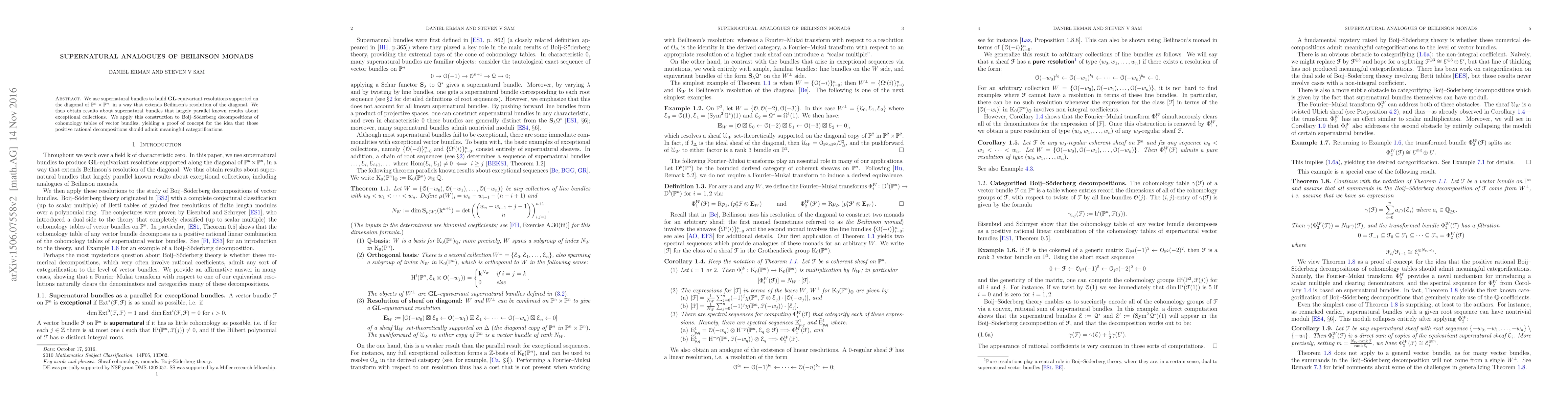 Researchers developed a new method to study supernatural bundles, paralleling results about exceptional collections in algebraic geometry. This breakthrough offers a proof of concept for categorifying Boij-Soderberg decompositions of cohomology tables of vector bundles.