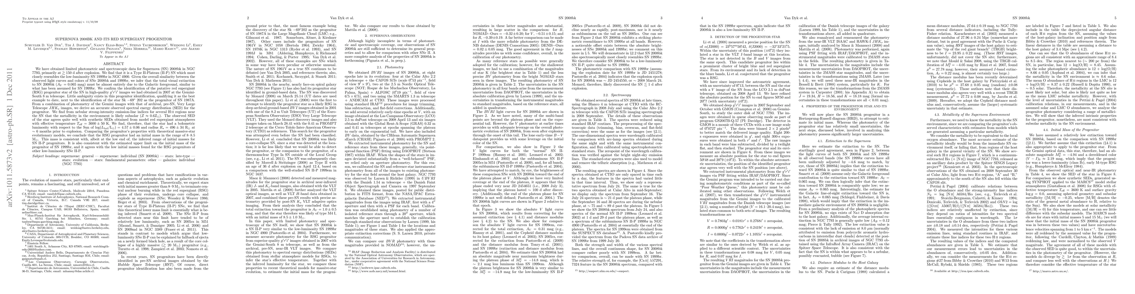 Astronomers have identified a red supergiant star as the progenitor of Supernova 2008bk, confirming its type II-Plateau classification and estimating its initial mass at around 8-8.5 solar masses.