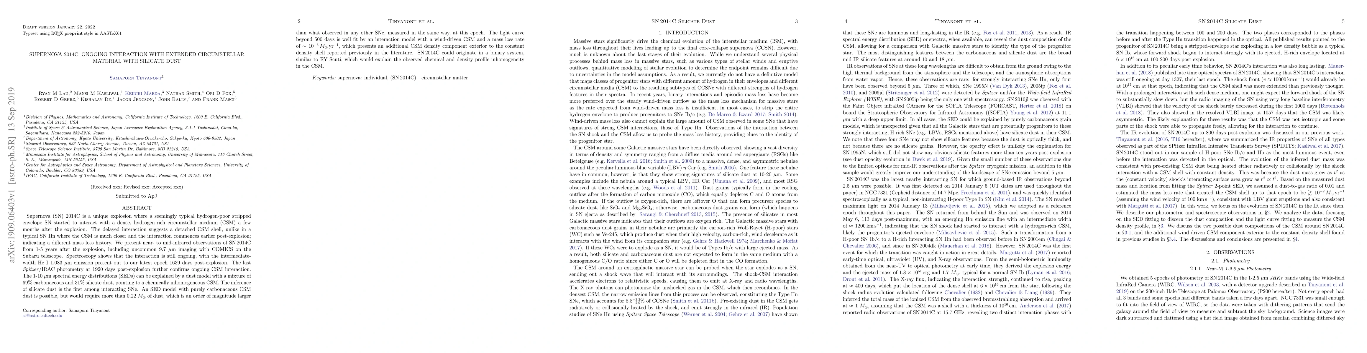 Astronomers study Supernova 2014C, which interacted with its hydrogen-rich circumstellar material months after explosion, revealing a detached CSM shell and chemically inhomogeneous dust composition.