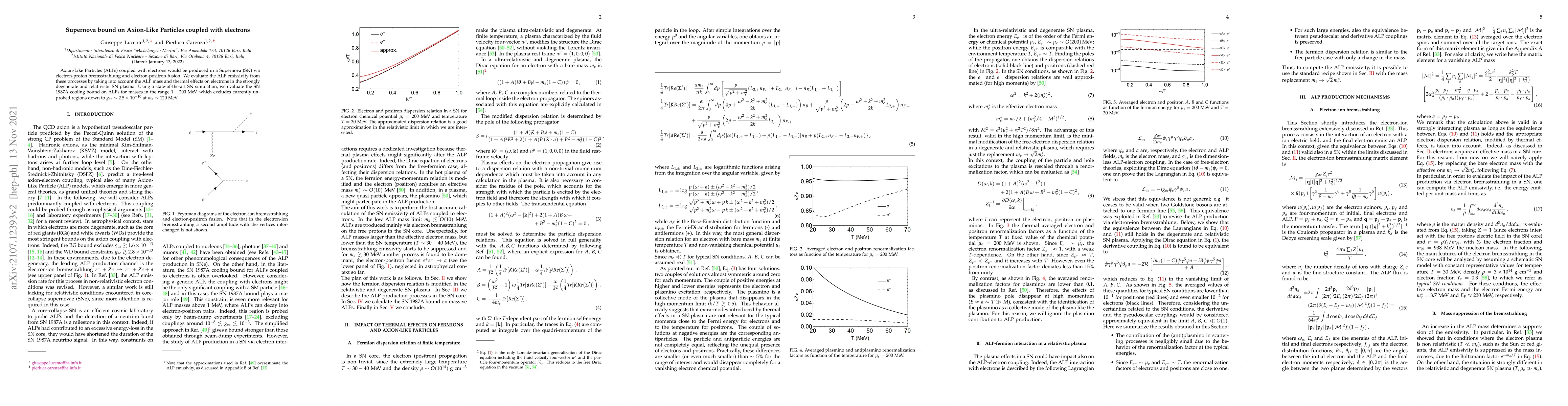 This paper evaluates the production of Axion-Like Particles (ALPs) in Supernovae via electron-proton bremsstrahlung and electron-positron fusion, considering ALP mass and thermal effects. It uses a state-of-the-art SN simulation to derive a cooling bound on ALPs from SN 1987A, excluding unprobed regions down to $g_{ae}\sim 2.5\times 10^{-10}$ at $m_a\sim 120$ MeV.