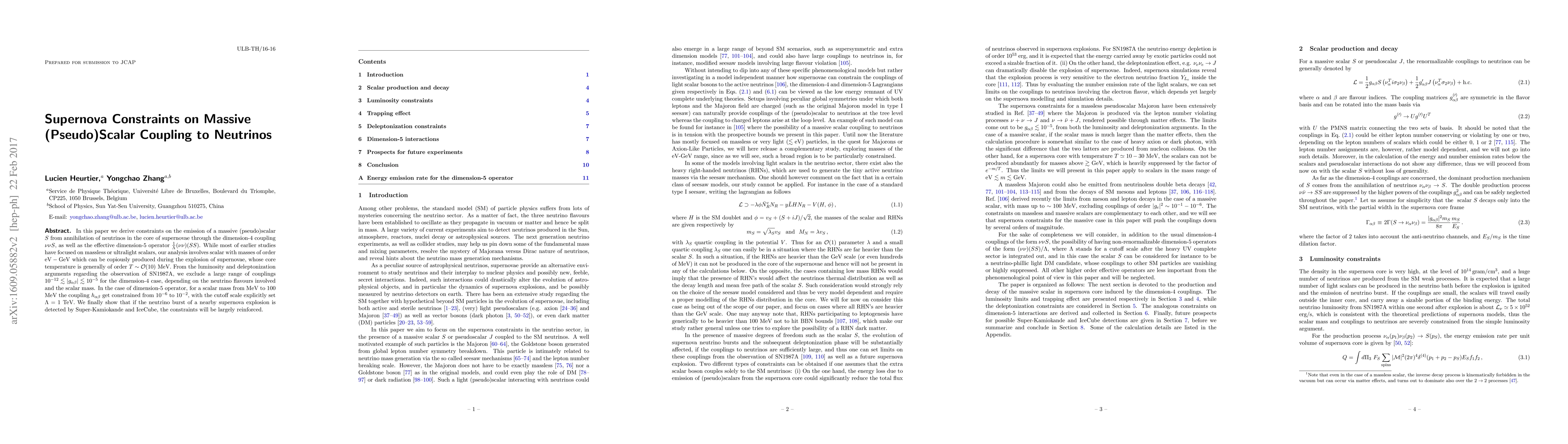 Researchers constrain massive pseudo-scalar coupling to neutrinos in supernovae explosions, excluding a large range of couplings for dimension-4 and dimension-5 operators.