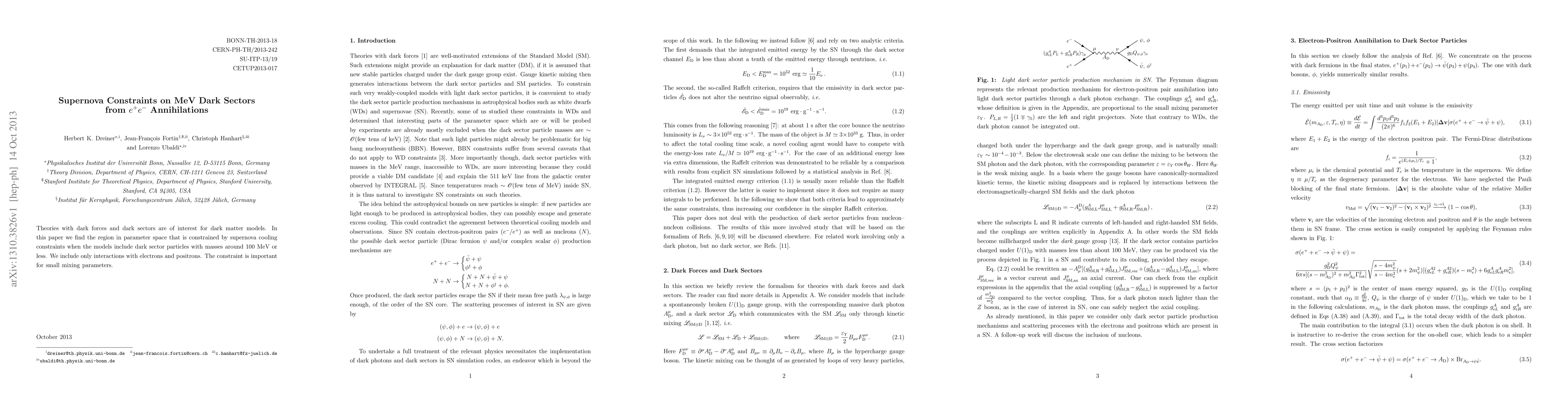 Theories with dark forces and dark sectors are of interest for dark matter models. In this paper we find the region in parameter space that is constrained by supernova cooling constraints when the models include dark sector particles with masses around 100 MeV or less. We include only interactions with electrons and positrons. The constraint is important for small mixing parameters.