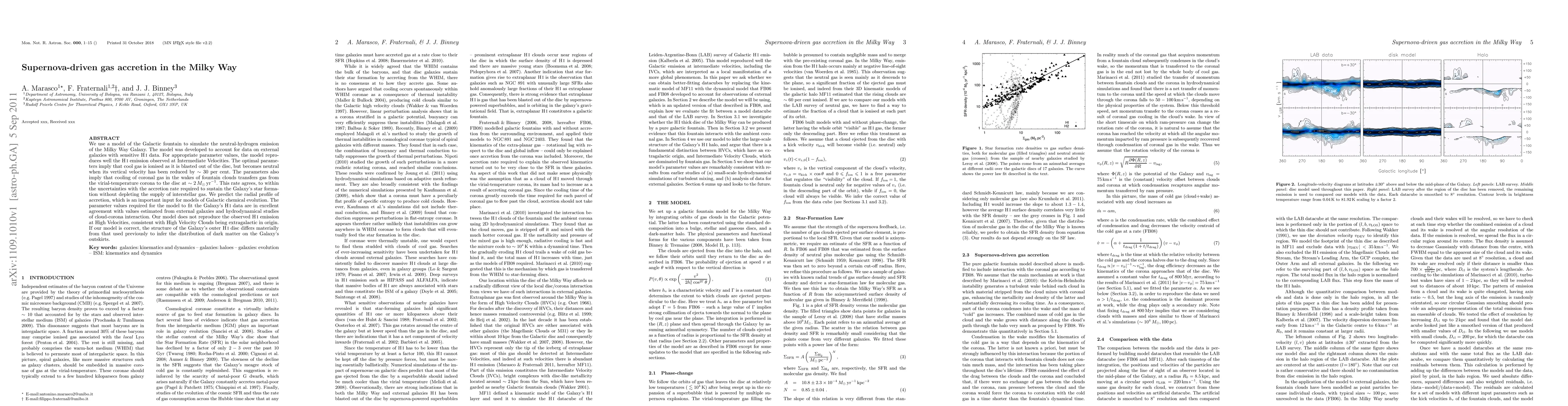 This research uses a Galactic fountain model to simulate the Milky Way's neutral-hydrogen emission, showing that supernova-driven gas accretion sustains star formation without depleting interstellar gas. The model suggests that gas accretion occurs at a rate of ~2 Mo/yr, aligning with external galaxy data.
