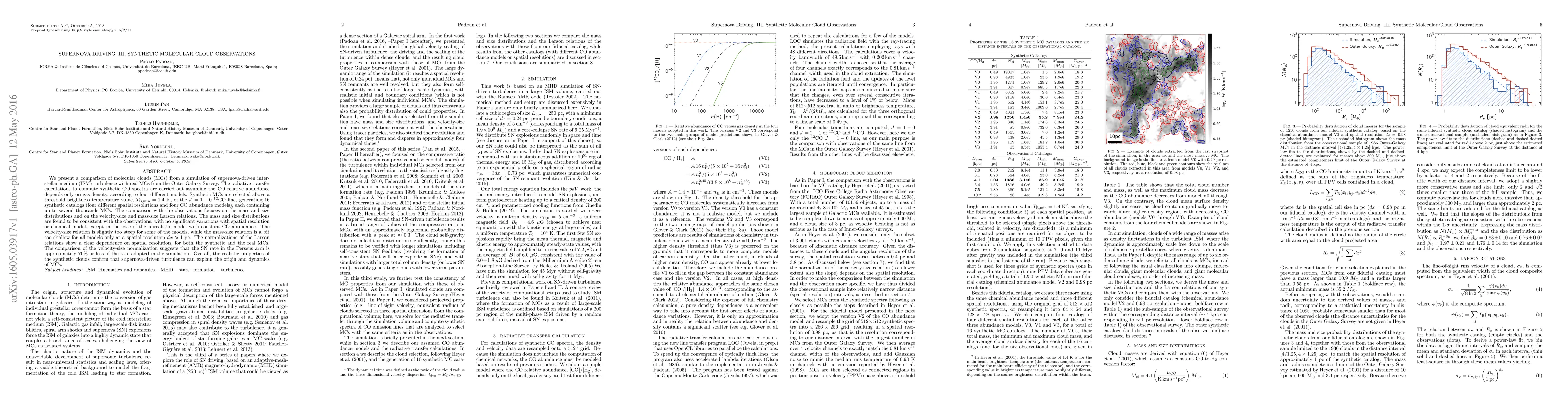 This study compares simulated molecular clouds driven by supernovae with real ones from the Outer Galaxy Survey. Using radiative transfer calculations, it finds that synthetic clouds match observed mass and size distributions, with slight discrepancies in Larson relations. The findings suggest that supernova-driven turbulence can explain molecular cloud origins and dynamics, with an estimated lower supernova rate in the Perseus arm than in the simulation.