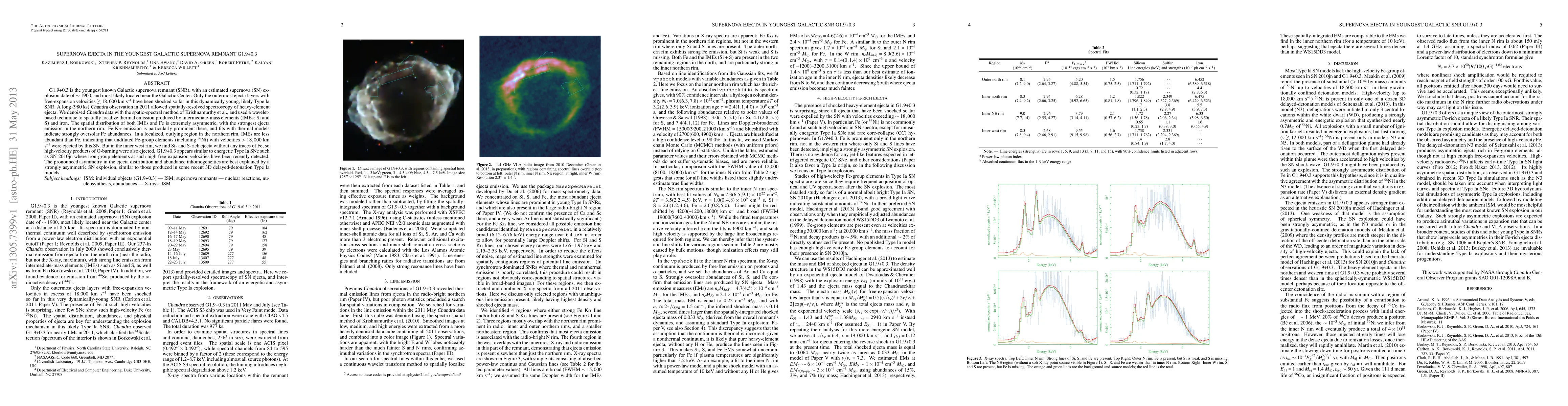 This paper investigates the youngest Galactic supernova remnant, G1.9+0.3, revealing highly asymmetric ejecta distribution and inhomogeneous abundances, suggesting a strongly asymmetric Type Ia supernova explosion. The Chandra observation data shows prominent Fe Kalpha emission and oversolar Fe abundances in the northern rim, alongside Si- and S-rich ejecta in the west rim.