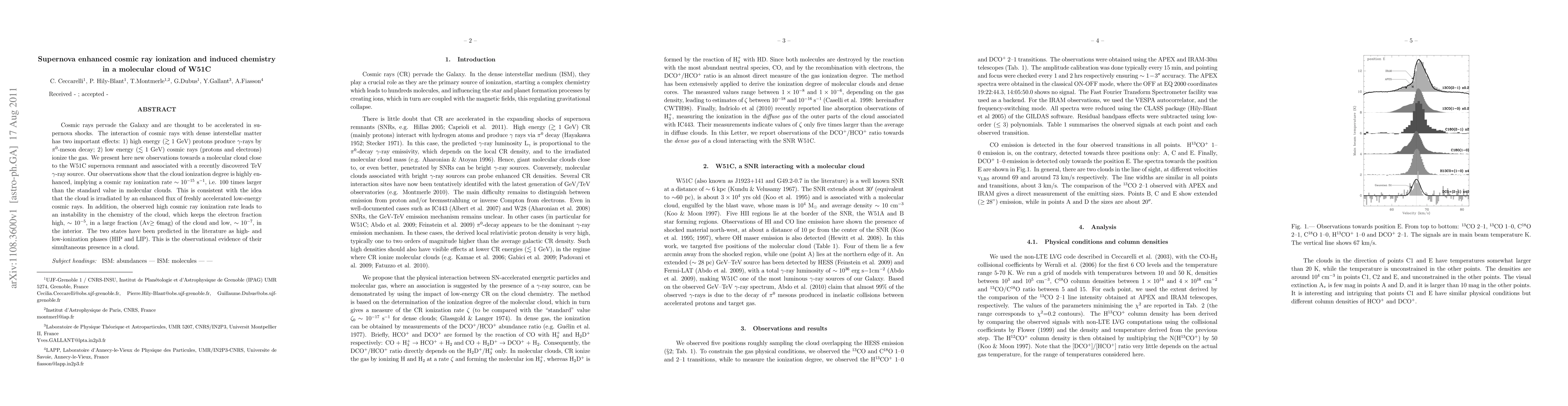 This paper reports enhanced cosmic ray ionization in a molecular cloud near the W51C supernova remnant, driven by freshly accelerated cosmic rays from the supernova. The high ionization rate (~10-15 s-1) leads to distinct high- and low-ionization phases in the cloud, providing observational evidence for their simultaneous presence.